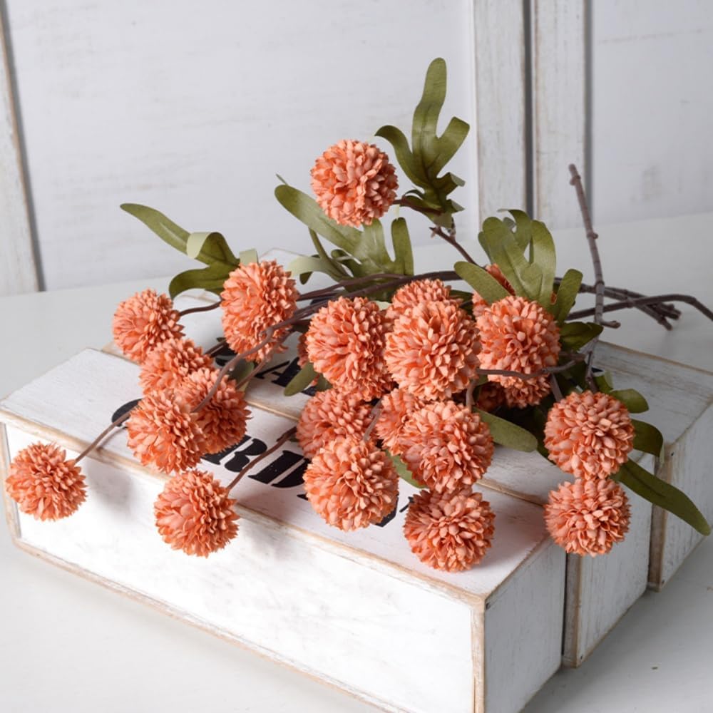 6pcs Pompon Mum Artificial Flower (Burnt Orange)