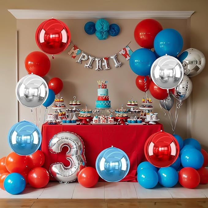 6Pcs Red Blue Silver Round Foil Balloons, 22inch 4D Metallic Balloons, Large Round Foil Ball Balloon for Birthday Graduation 4th of July, Independence Day USA Patriotic Party Decoration