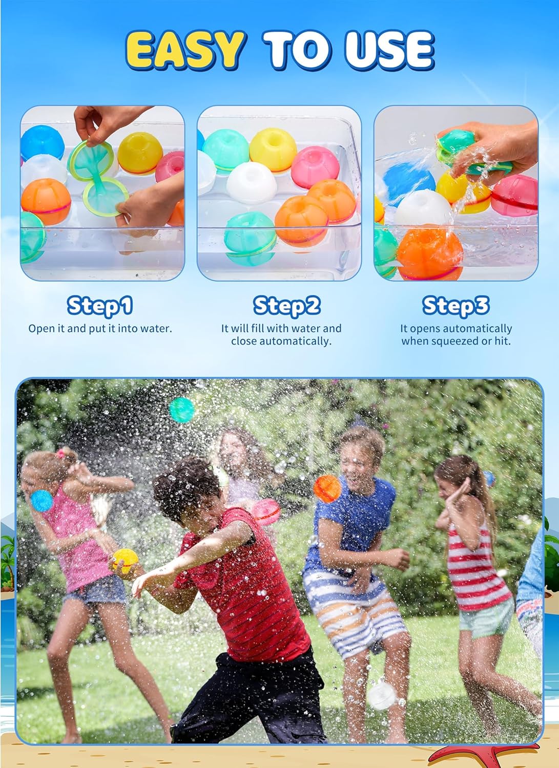 6Pcs Reusable Water Balloons, Magnetic Refillable Water Bomb Balloons