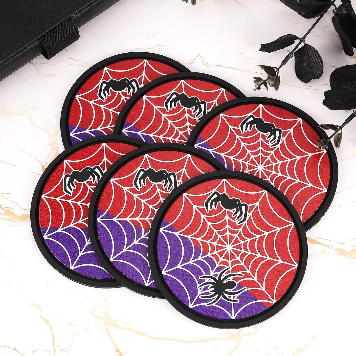 6pcs Spider Web Coaster, Silicone Coasters for Drinks