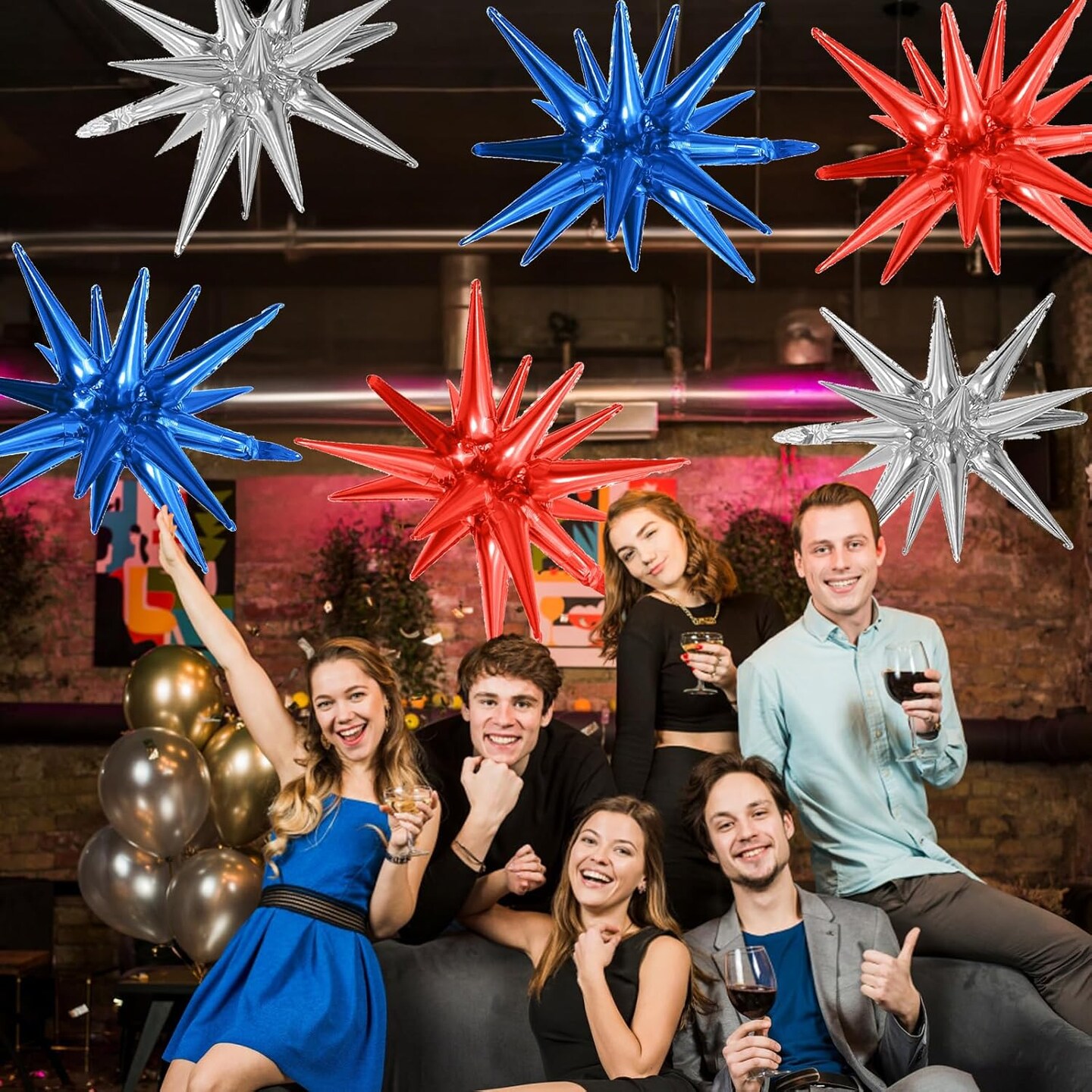 6PCS Star Balloons, 22Inch Blue Red and Silver Star Balloon Explosion Foil
