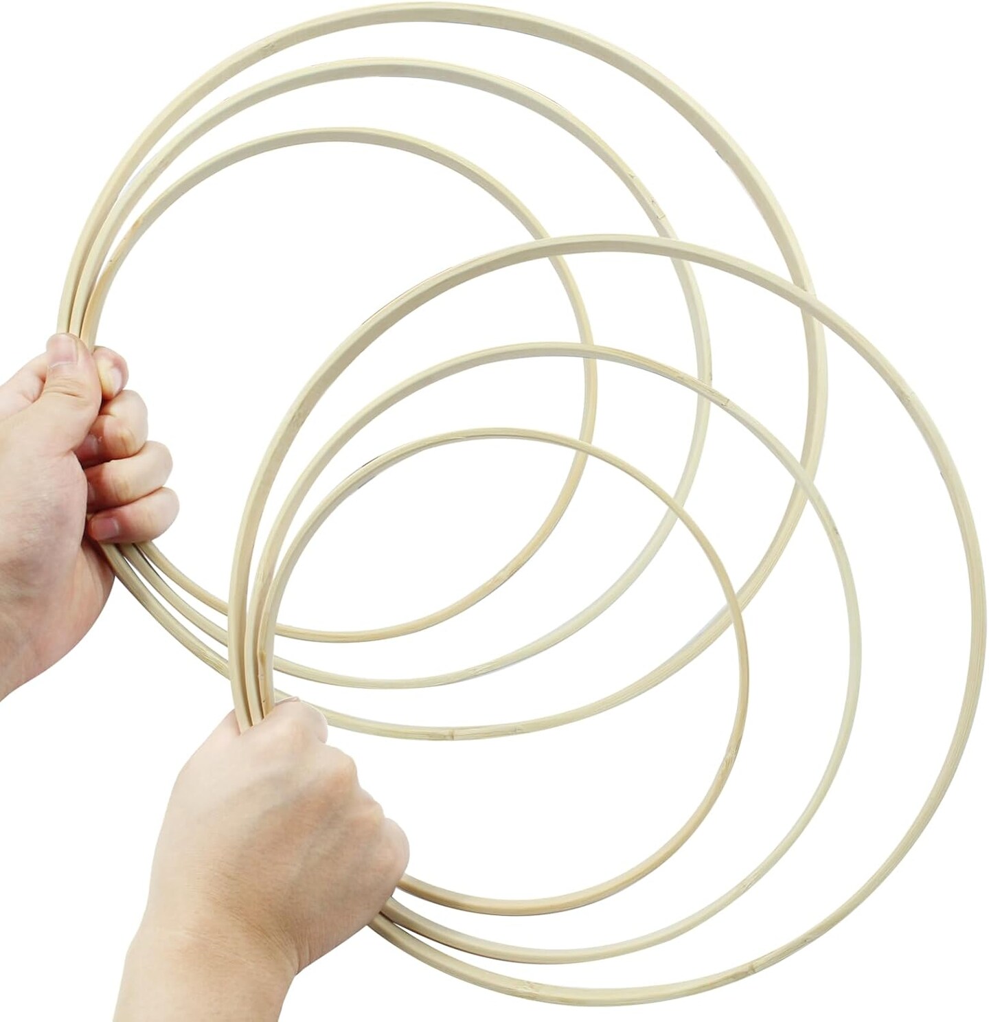 6Pcs Wooden Bamboo Floral Hoops, 3 Sizes Bamboo Macrame Hoop Set Craft Bamboo Rings for DIY Making Wedding, Christmas Wall Hanging and Dream Catcher