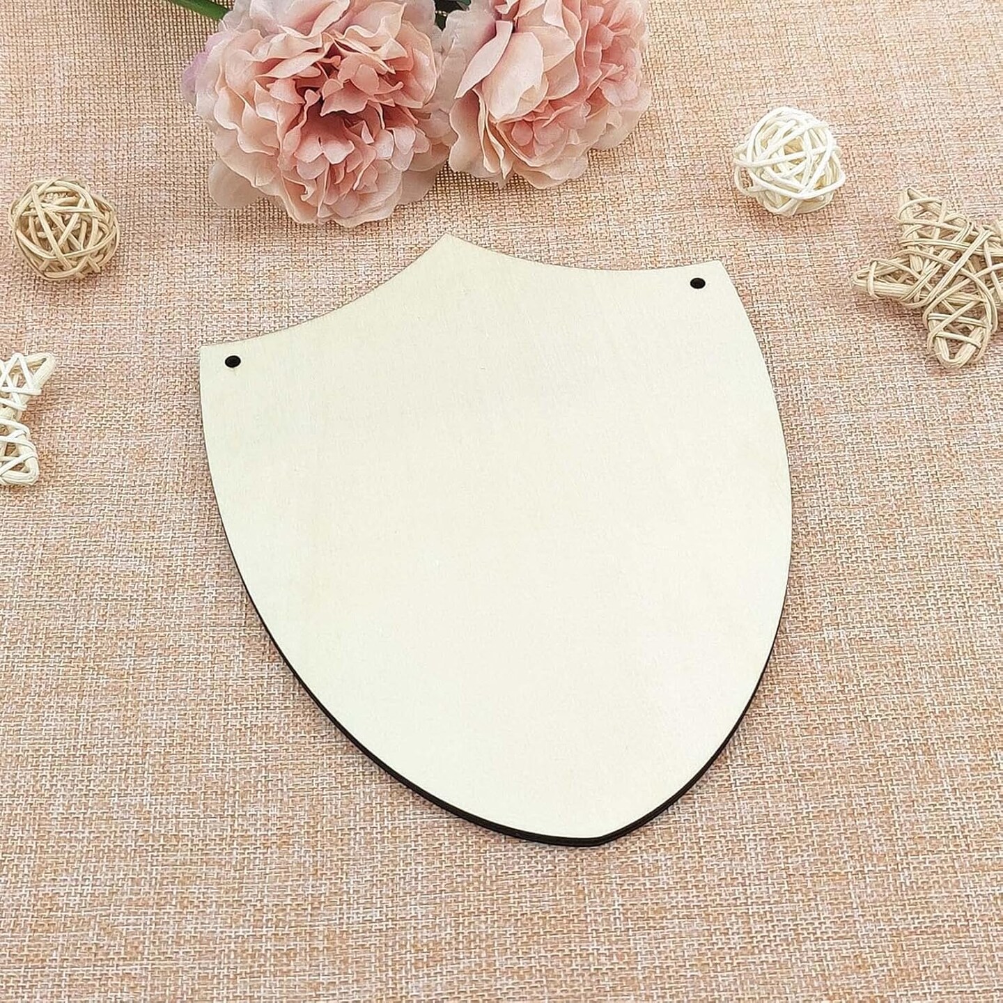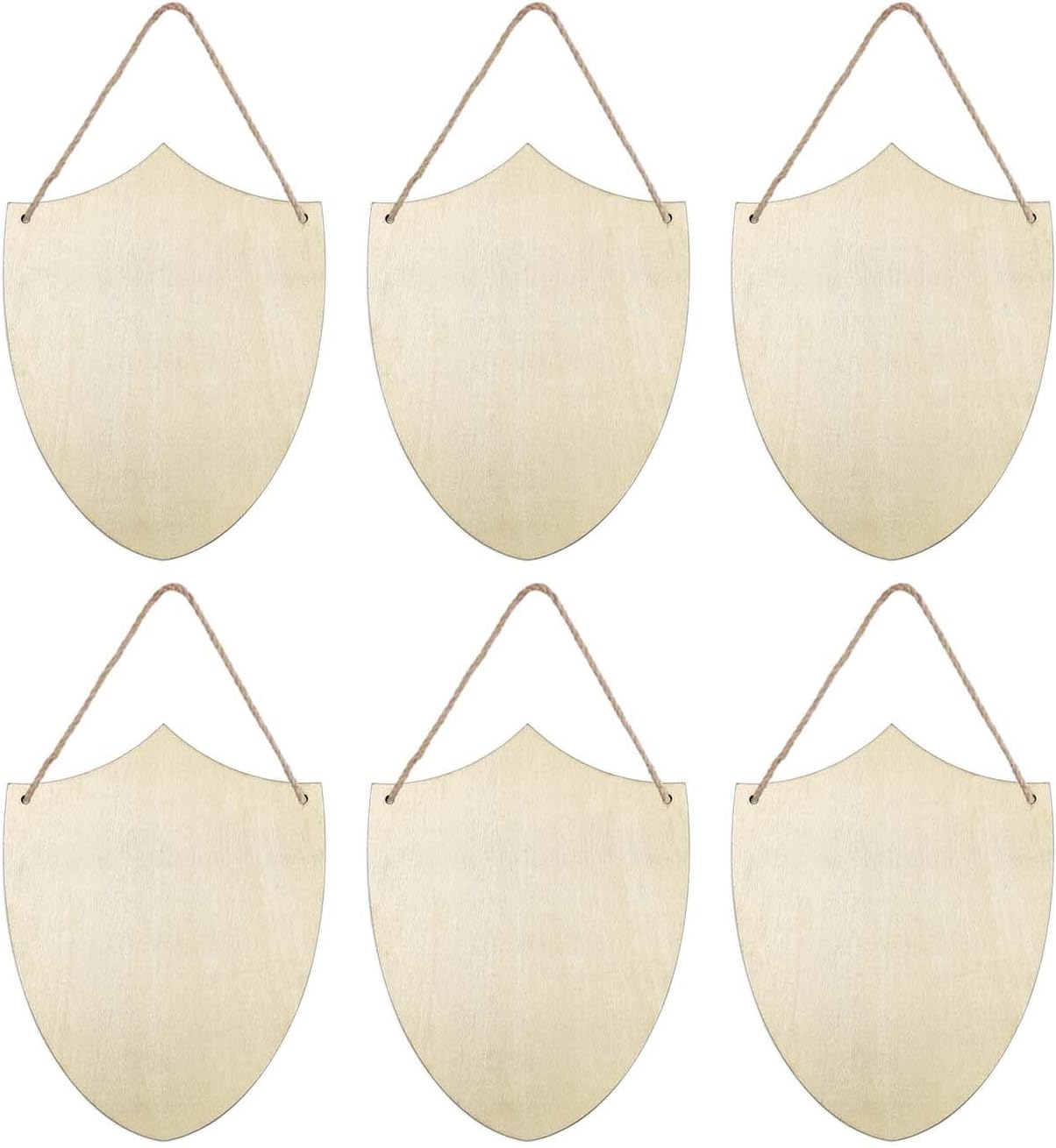 6pcs Wooden Shield Shapes Wood Sign Blank Hanging Wooden Plaque