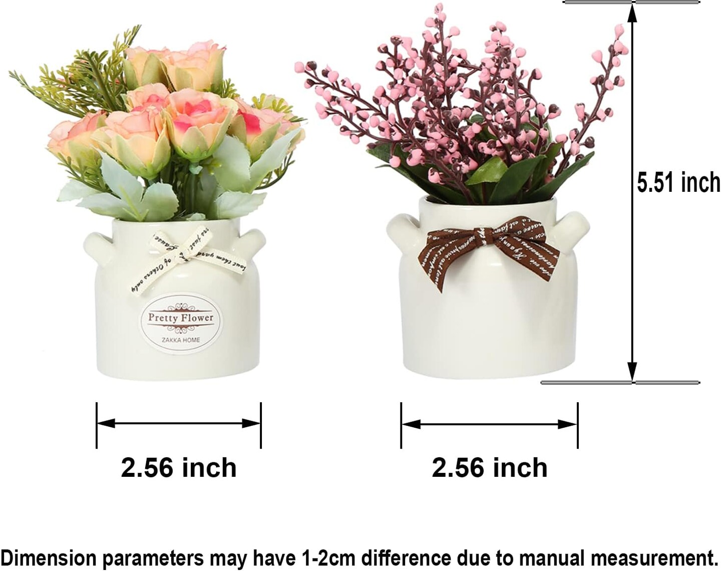 6-Piece Artificial Flowers in Ceramic Pots – Faux Spring Flower Arrangements, Small Vases for Easter, Farmhouse Home, Office, and Table Centerpiece Decor