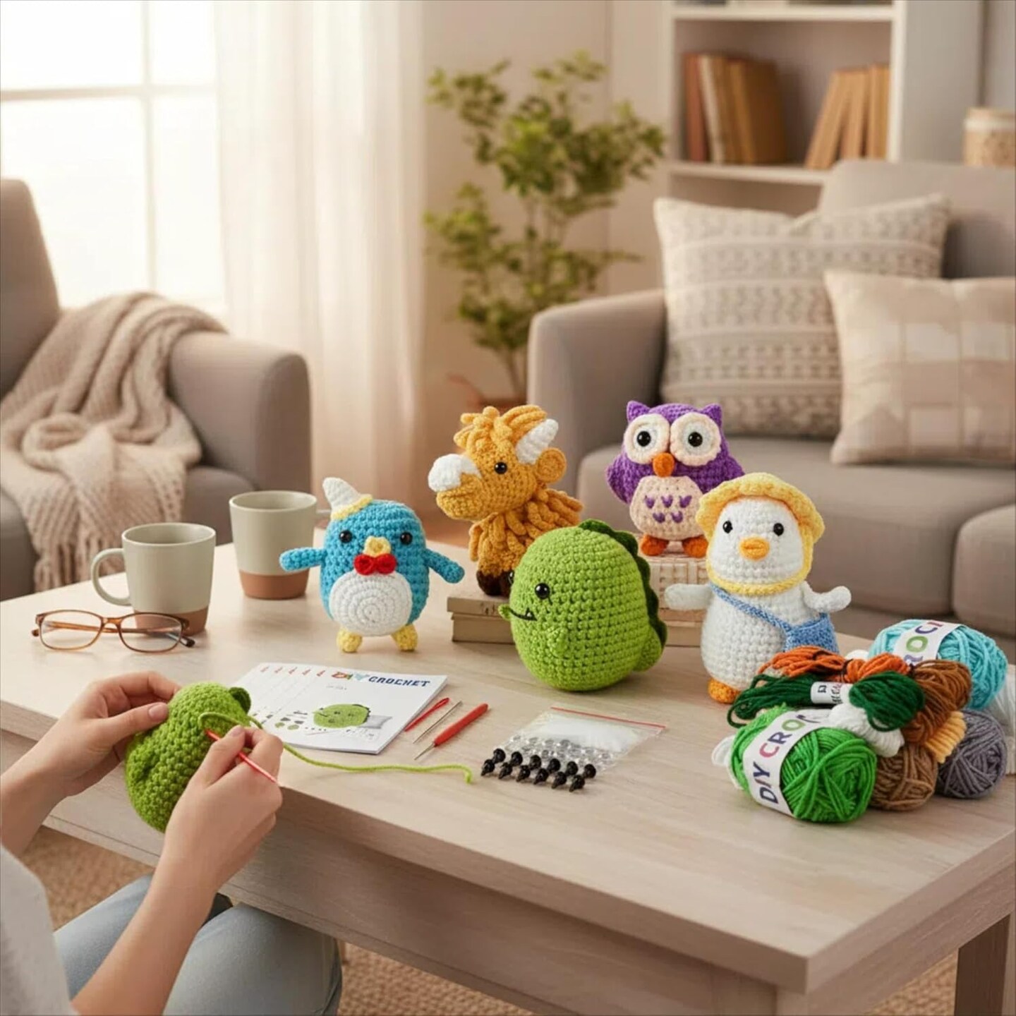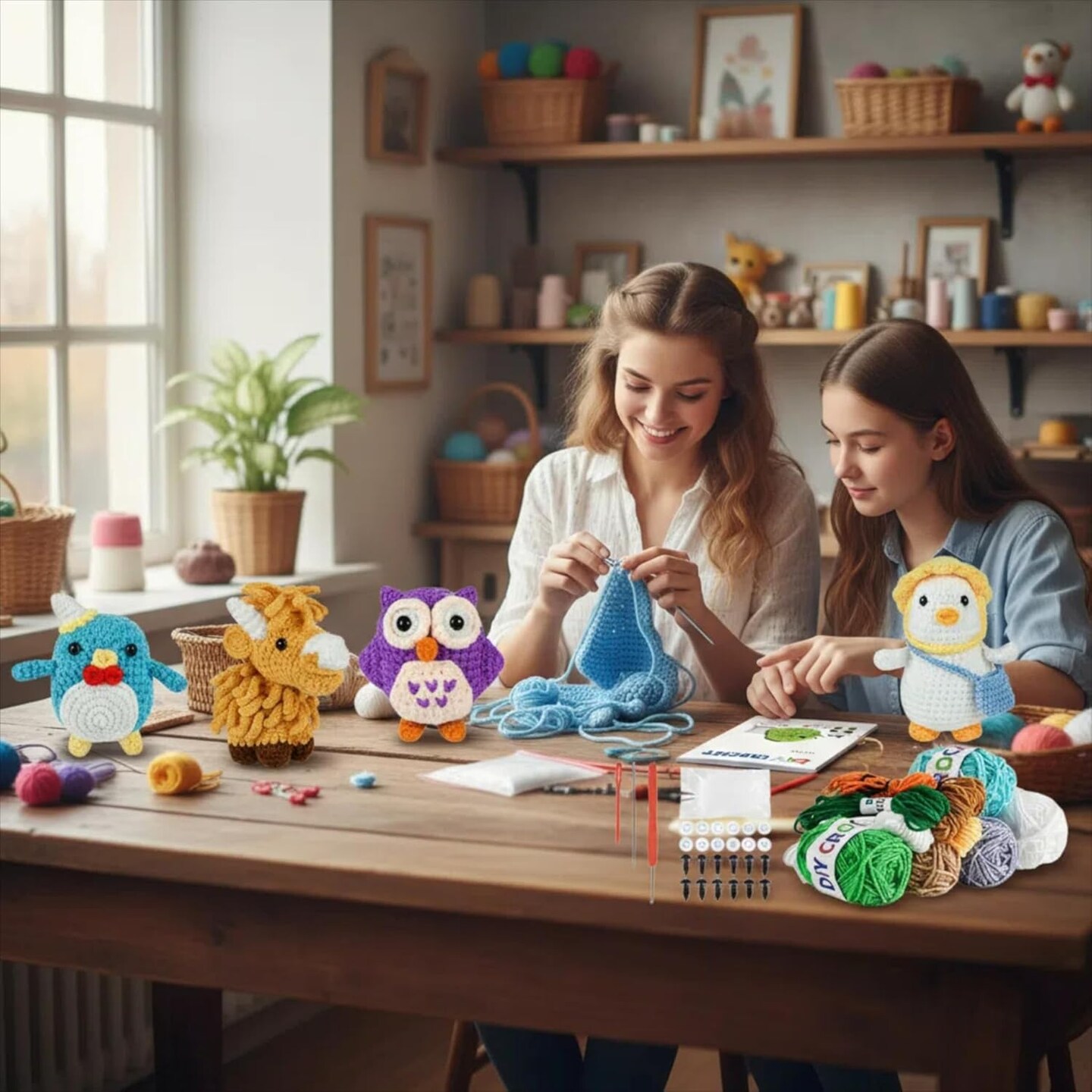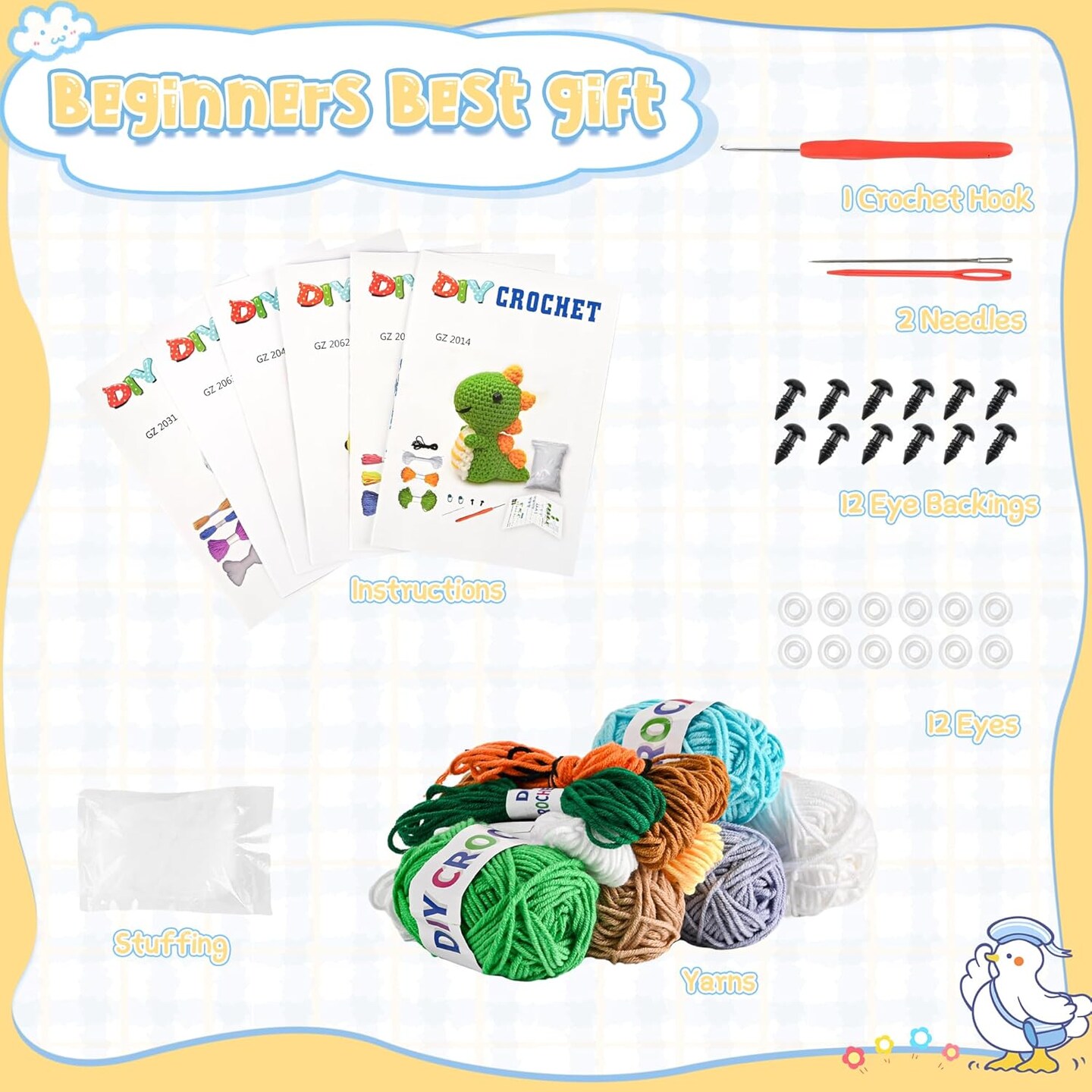 6-Piece Beginner Crochet Kit for Adults & Kids – DIY Animal Amigurumi Kits with Step-by-Step Video Tutorials, Yarn, Crochet Hooks, and Perfect Gift for Holidays & Birthdays
