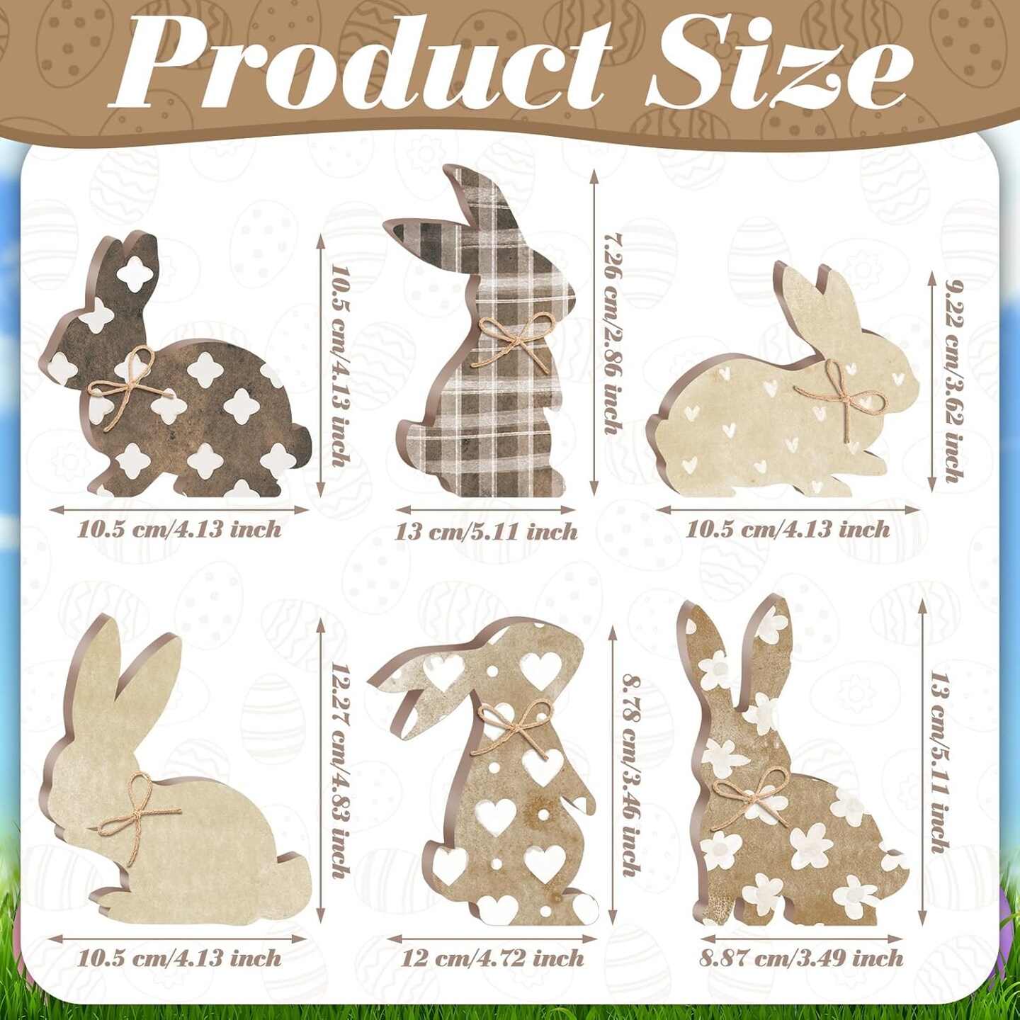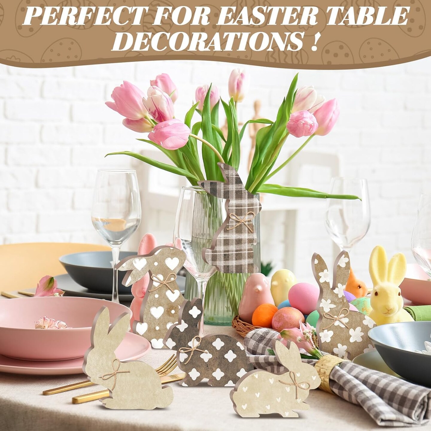 6-Piece Easter Bunny Wooden Signs – Cute Bunny & Easter Egg Table Centerpiece Decorations with Rope for Home & Tiered Tray Décor