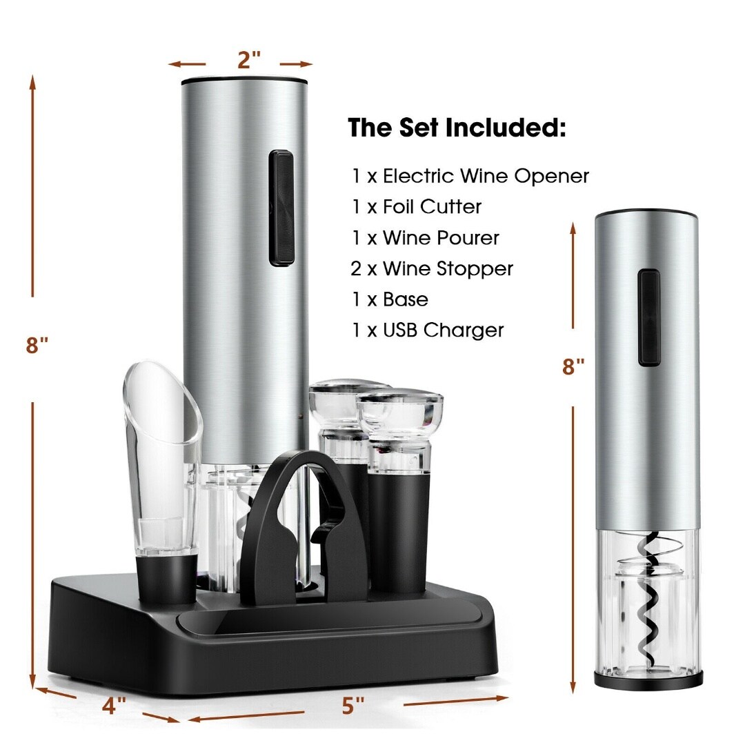6-Piece Electric Wine Bottle Opener Set with USB Charging and Accessories Perfect Gift for Wine Lovers