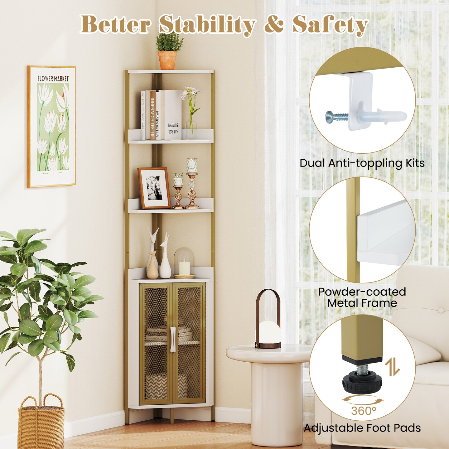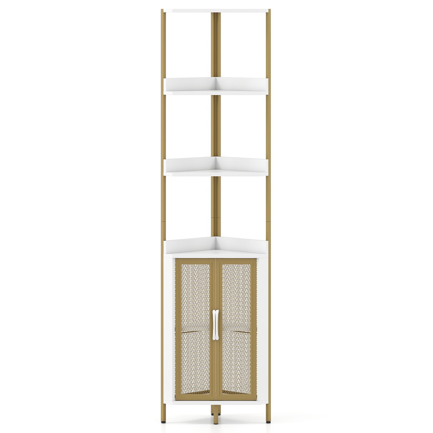 6-Tier Corner Bookshelf with Storage Cabinet 67 Inch Industrial Bookcase