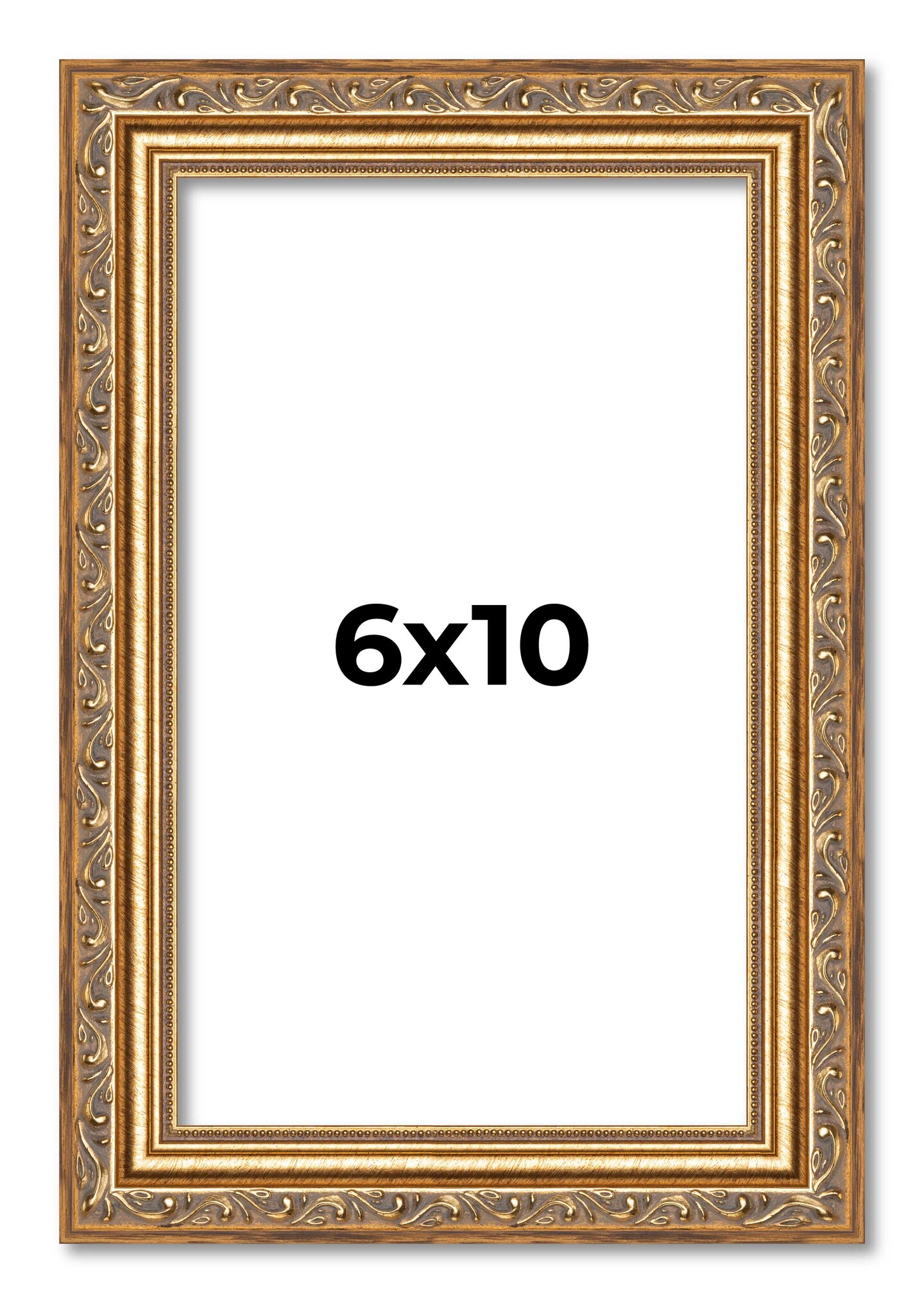 6x10 Solid Wood Antique Picture Frame with UV-Resistant Acrylic & Acid-Free Backing, Available in 4 Finishes: Bronze, Gold, Silver, and Gold with Black