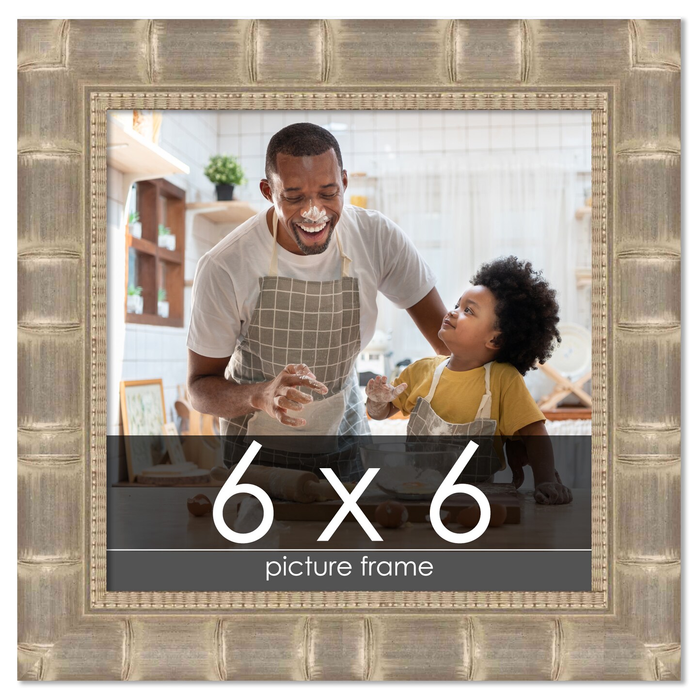 6x6 Wide Bamboo Picture Frame with UV-Resistant Acrylic & Acid Free Backing, Available in 4 Finishes - Brown, Black, Silver, and Natural