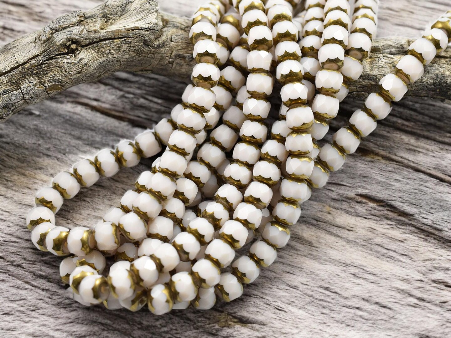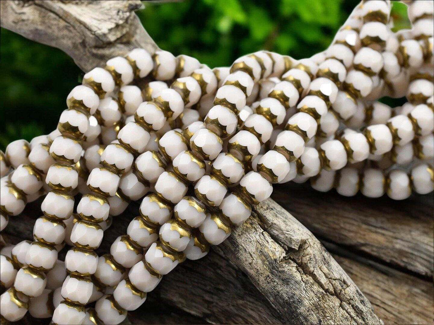 6x8mm Bronze Electroplated Opaque Ivory Faceted Rondelle Beads (15.75" strand)