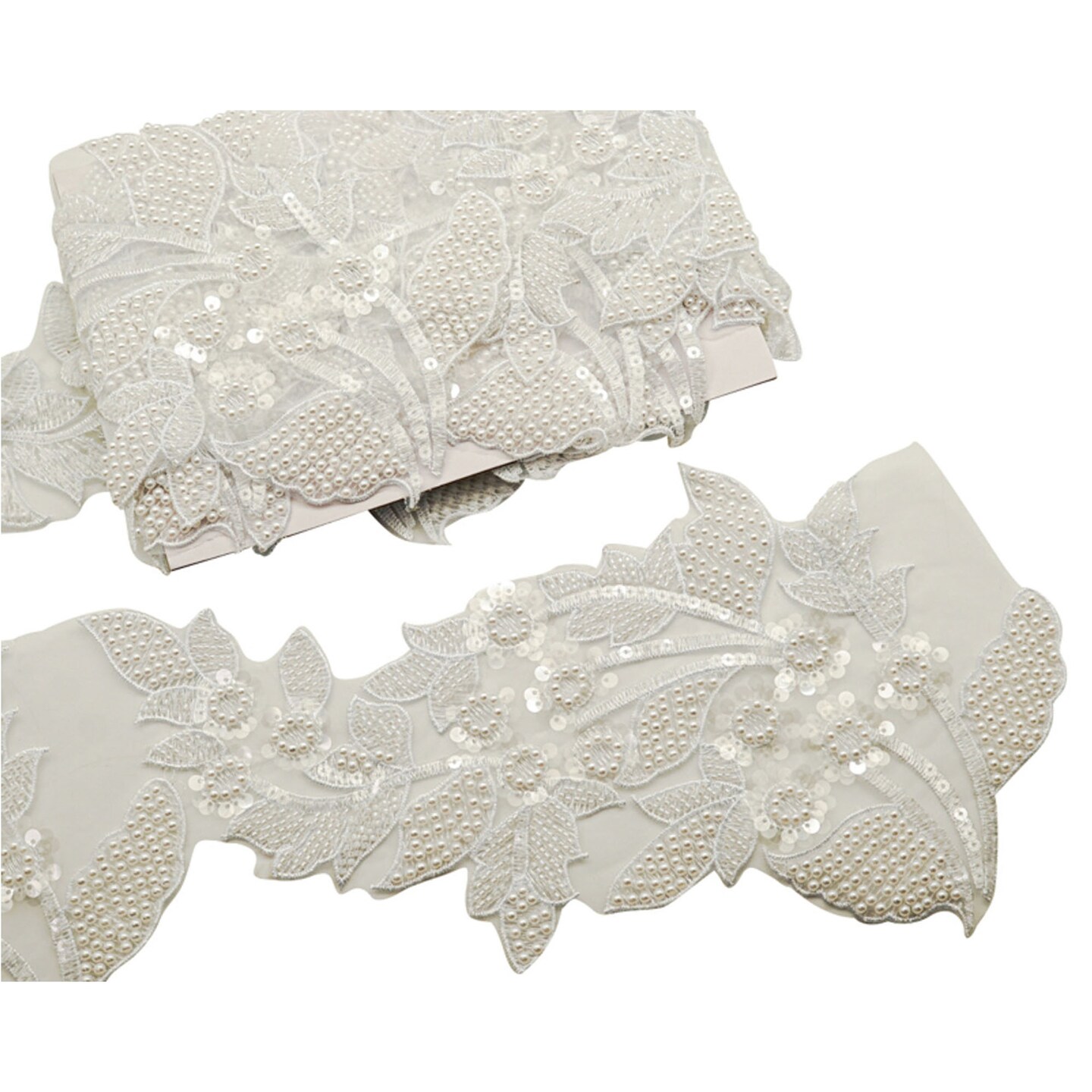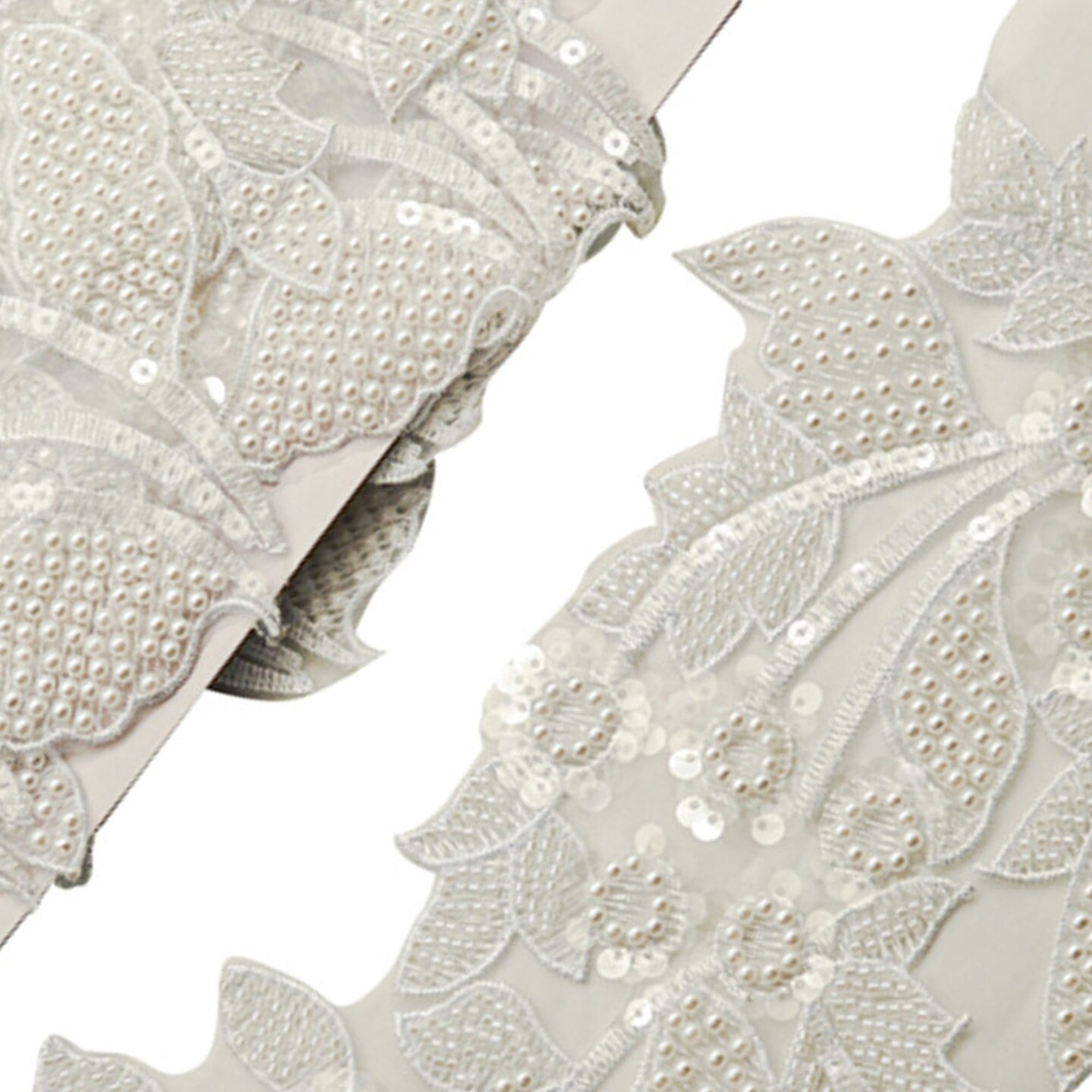 7 1/2"x 5 yards White Beaded Sequin Trim