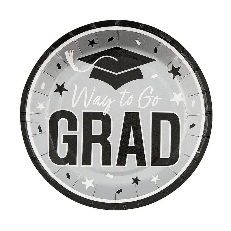 7 1/4" Purple "Way to Go Grad" Disposable Paper Dessert Plates 25 Count