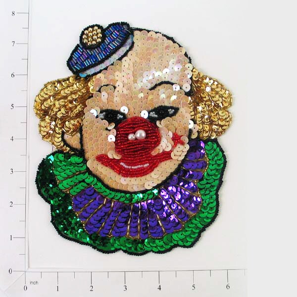 7 1/4" x 6 1/4" Mardi Gras Clown Face Sequin Applique/Patch