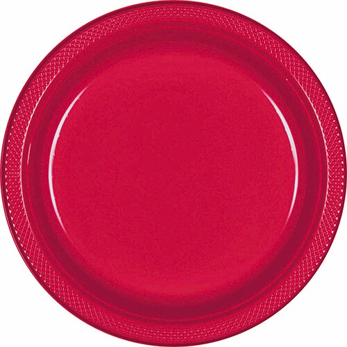 7" Apple Red Round Plastic Plates