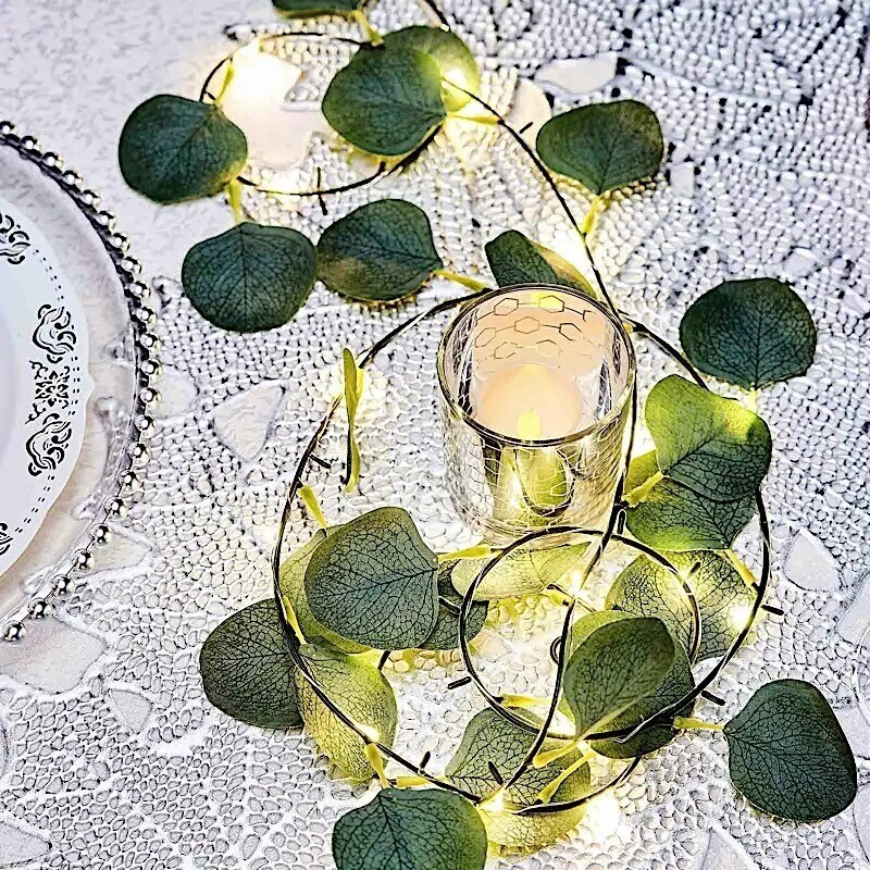 7 feet Green Eucalyptus Leaves LED GARLAND Battery Operated Fairy Lights Party