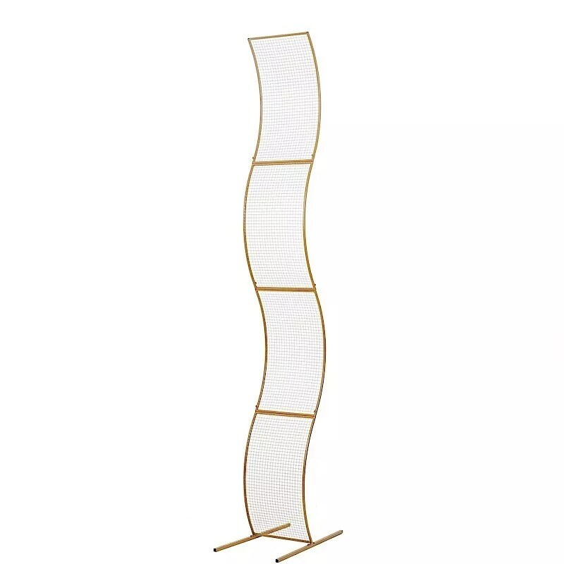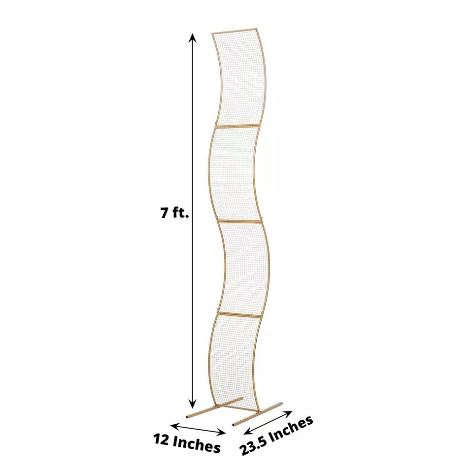 7 ft Gold Wavy Grid Metal Floral Display Frame Arch Backdrop Stand Party Events
