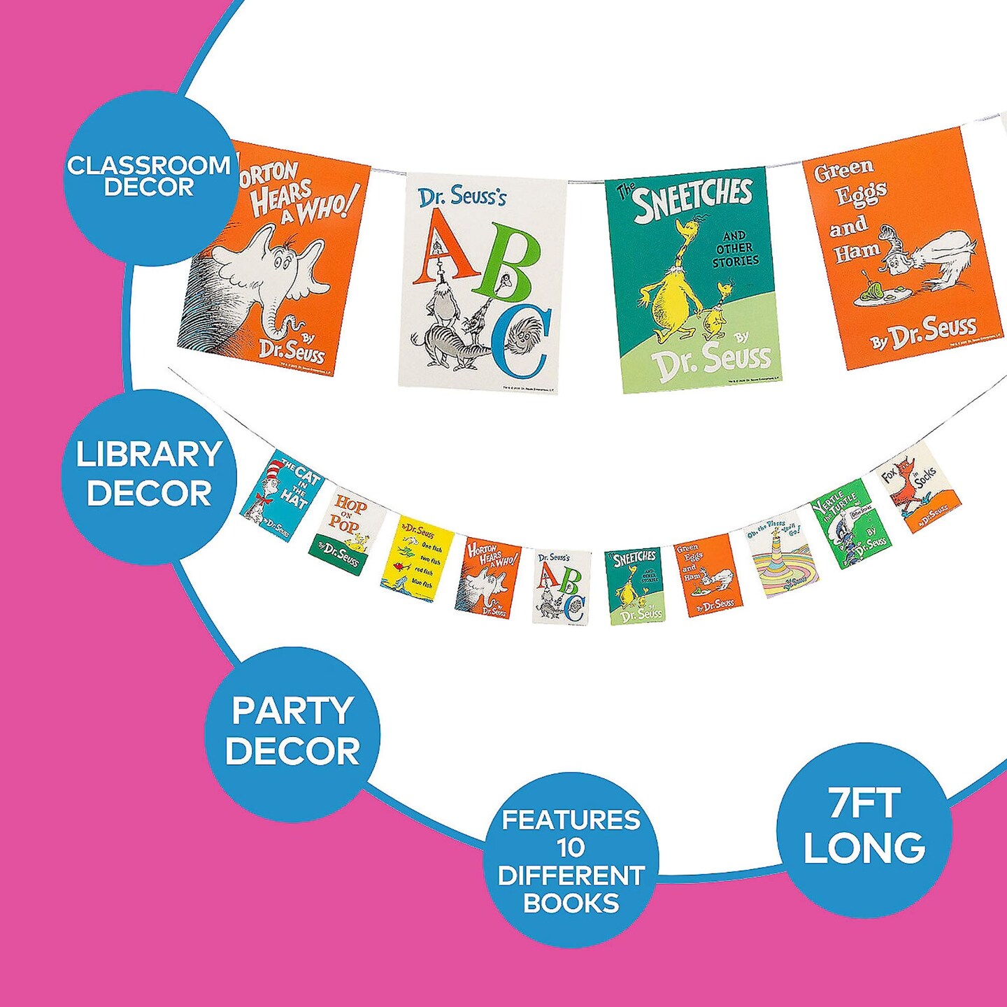 7 Ft. x 6 3/4" Dr. Seuss Book Cover Multicolor Cardstock Garland