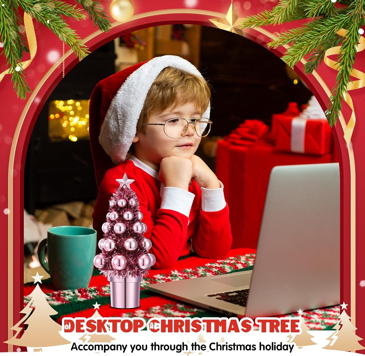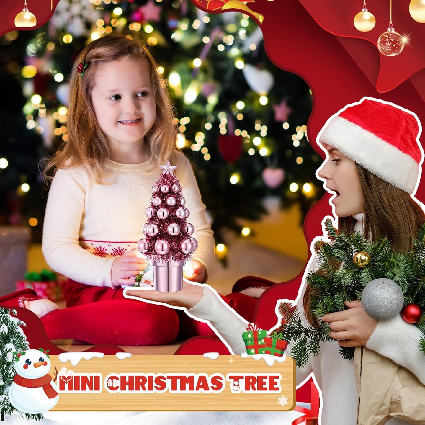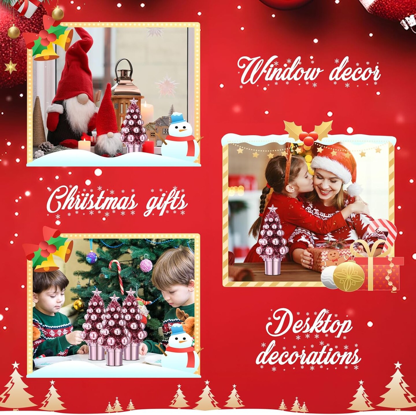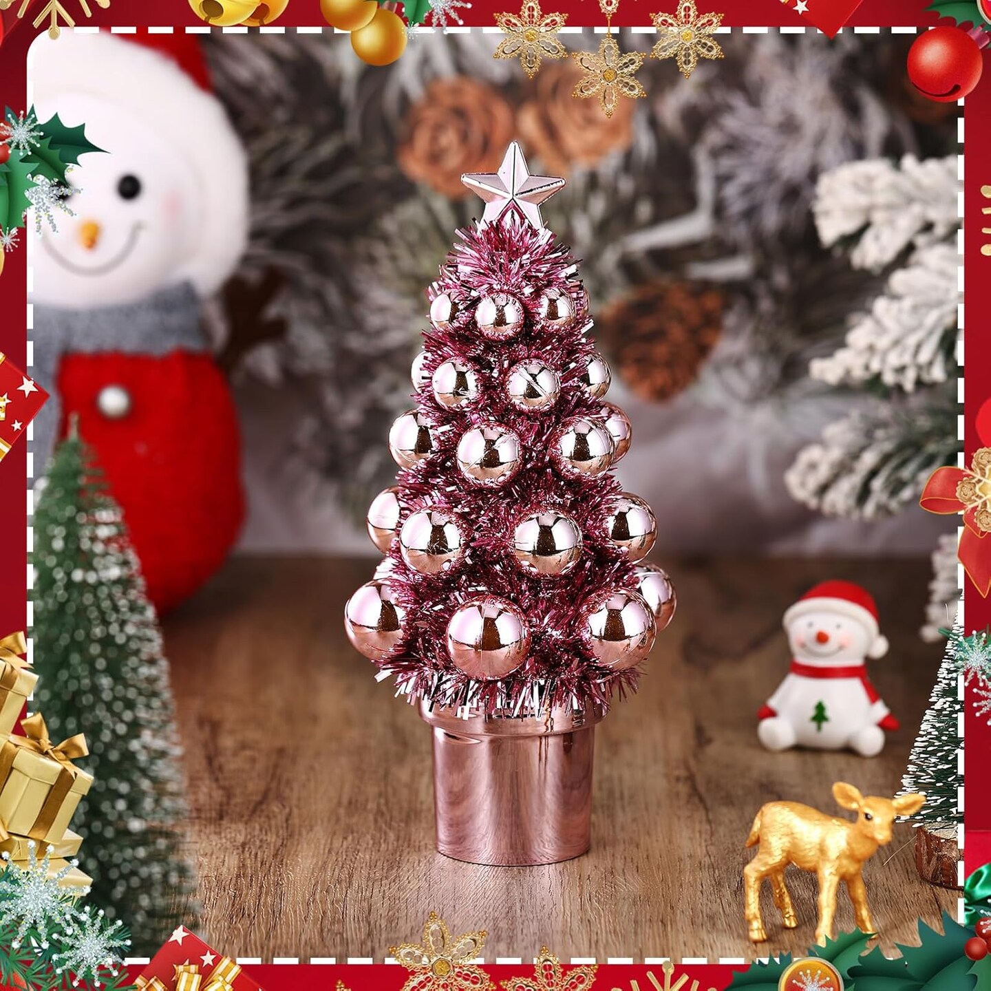 7 Inch Mini Christmas Trees with Christmas Ball Decorations (Pink)