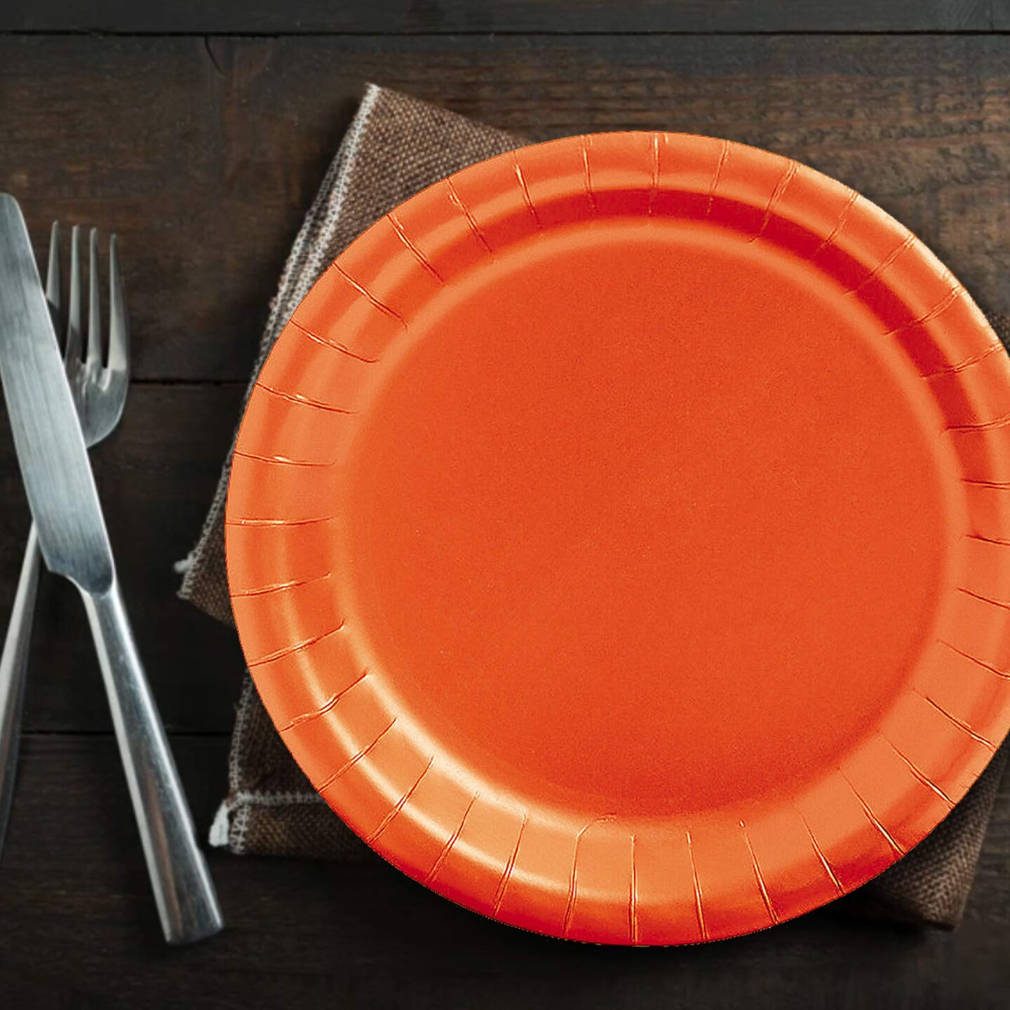 7 Inch Orange Color Round Paper Plates 24 Count for Desserts and Snacks