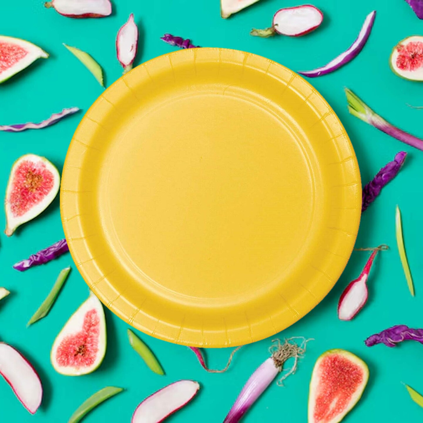 7 Inch Orange Yellow Color Round Paper Plates 24 Count for Desserts and Snacks