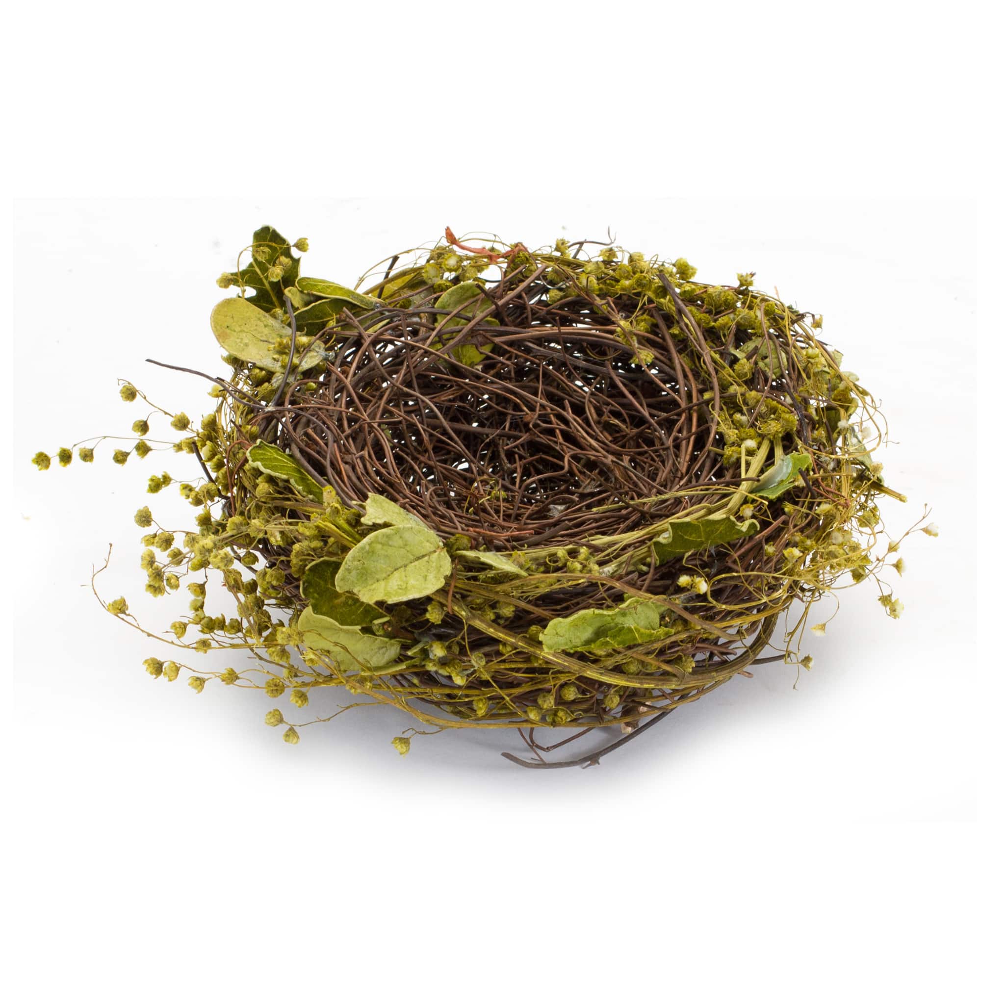 7" Natural Twig Bird Nest with Speckled Eggs Set