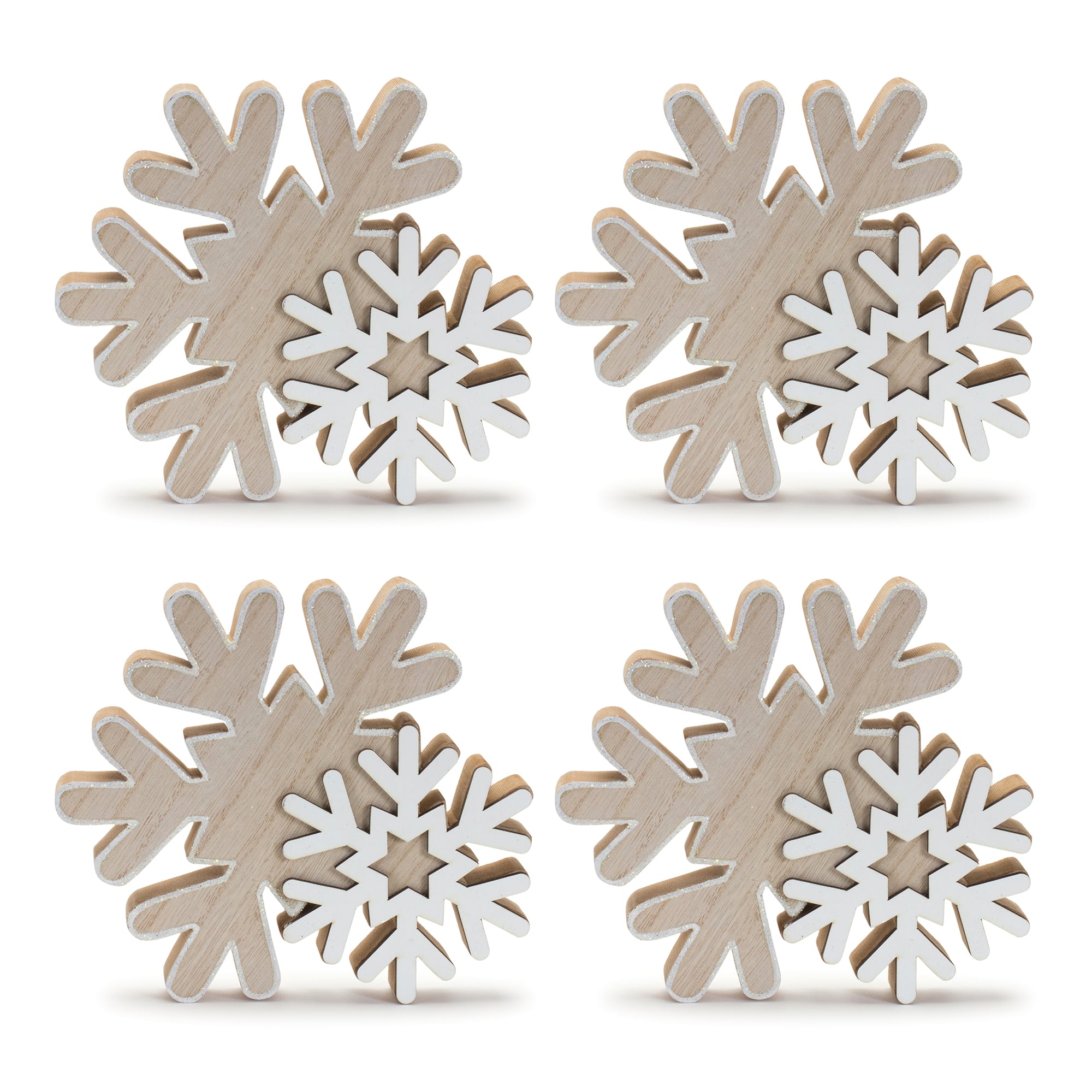 7" Natural & White Glittered Wood Snowflake, 4ct.