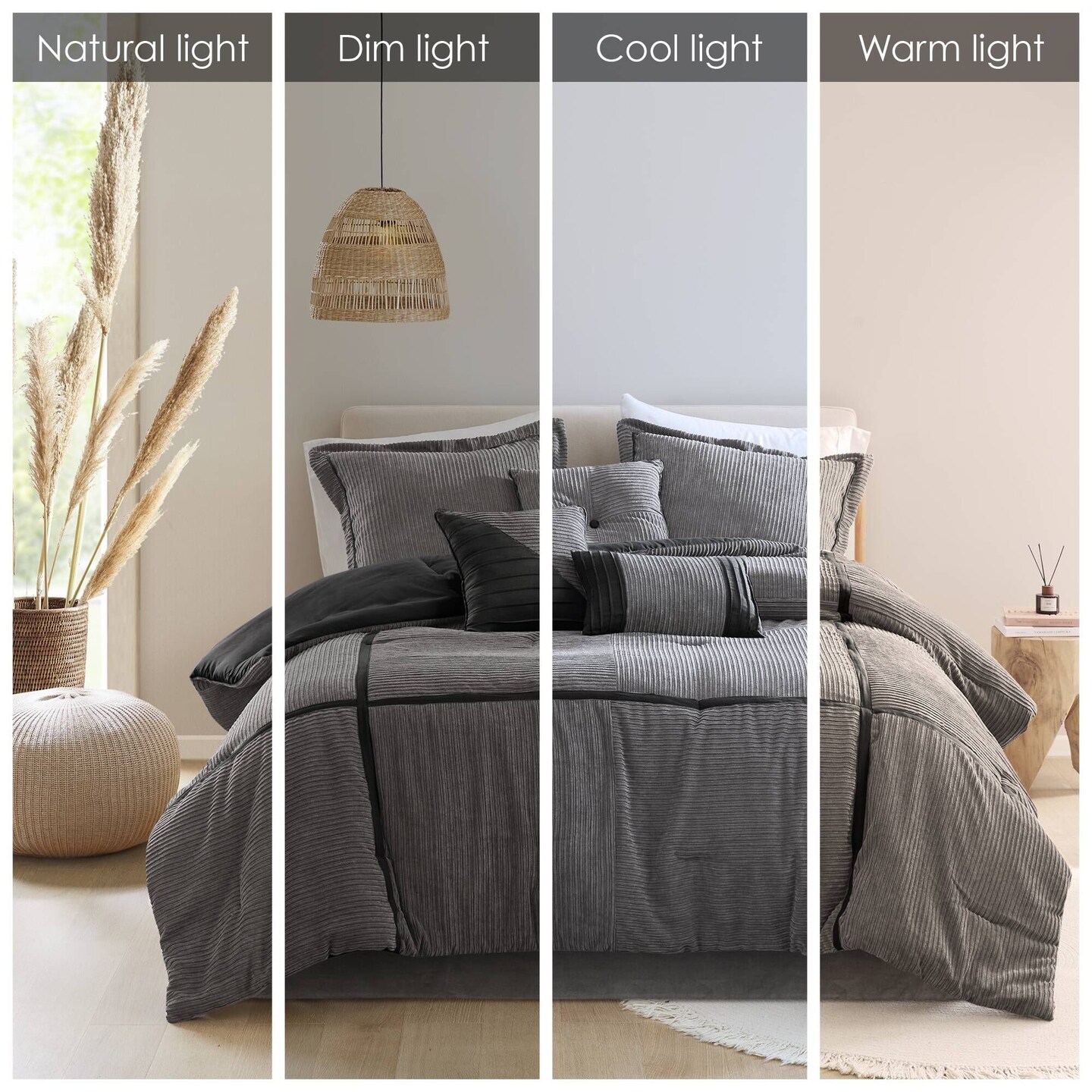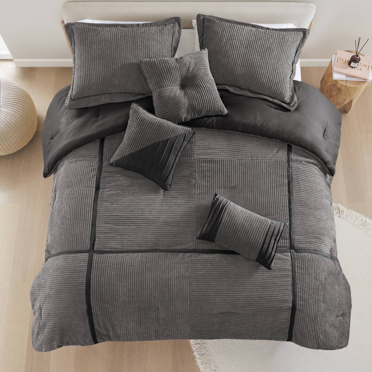 7 Piece Queen Size Brown Micro Corduroy Comforter Set