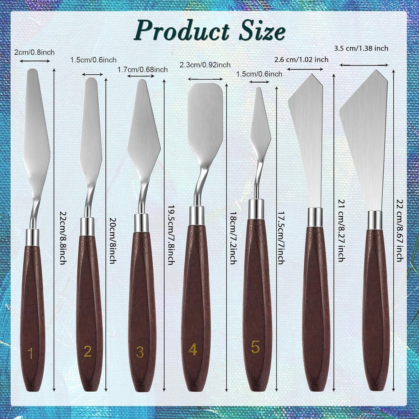 7 Pieces Painting Knife Set Spatula Palette Knife Stainless Steel Drawing Scraper Oil Painting Accessories with Wood Handle for Art Acrylic Draw Color Mixing Supplies(Redwood Color)
