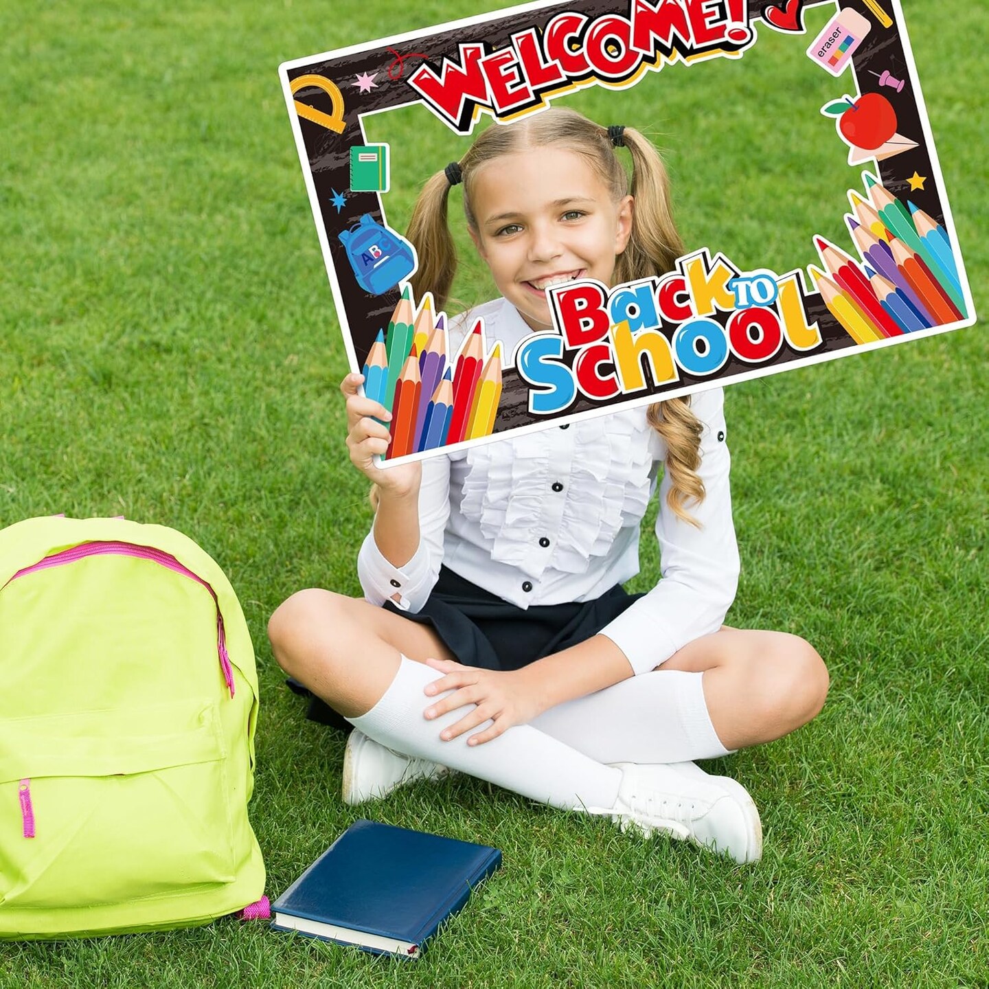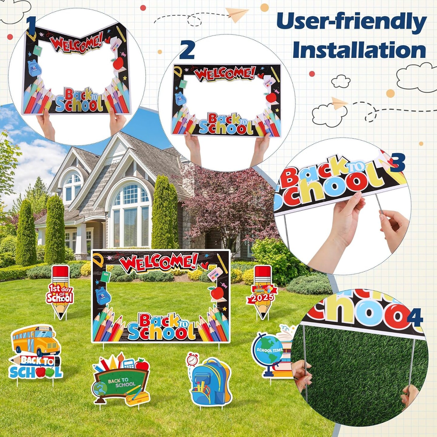 7 Pieces Welcome Back to School Yard Signs with Large Blackboard