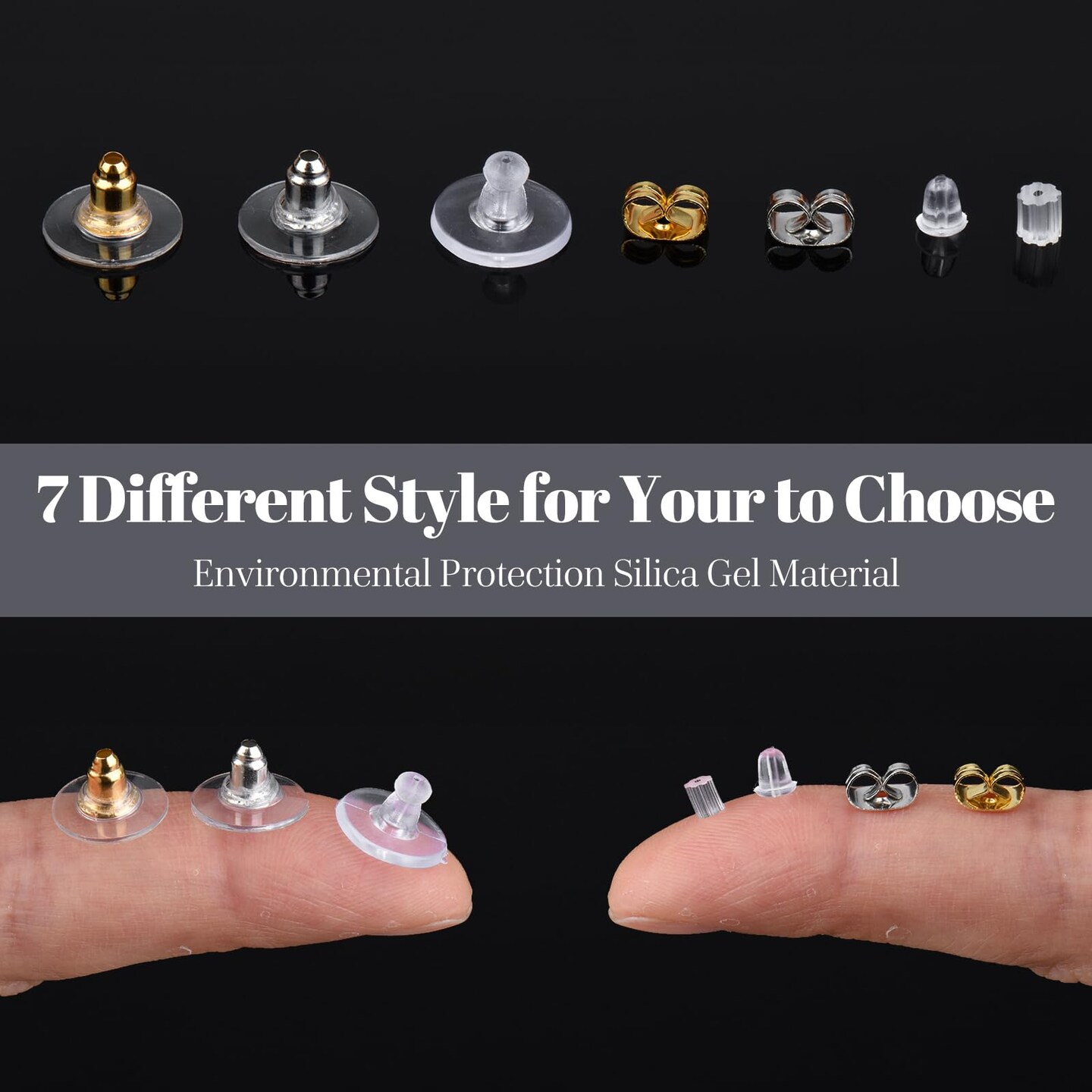 7 Styles Silicone Earring Backs Replacements for Studs/Droopy Ears/Heavy Earring,550Pcs Metal Clear Hypoallergenic Plastic Rubber Backings Clutch Stoppers for Fish Hook Studs Hoops