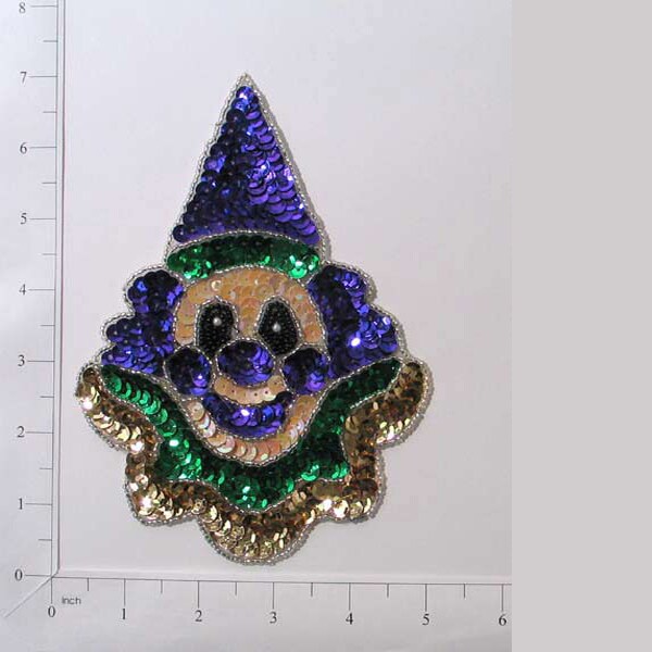 7" x 4 3/4" Mardi Gras Happy Clown Face Sequin Applique/Patch