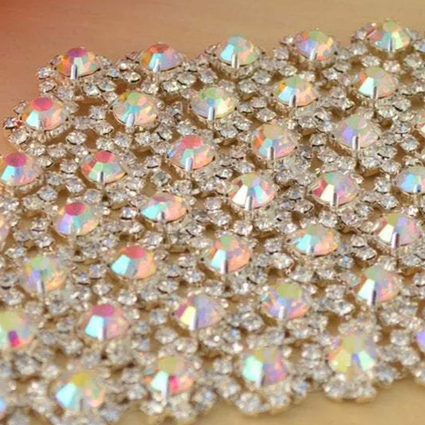 7" x 4" Clear Silver Rhinestone Diamond Applique with Metal Back for Dresses or Gowns