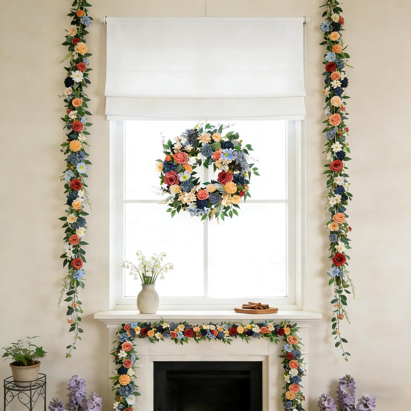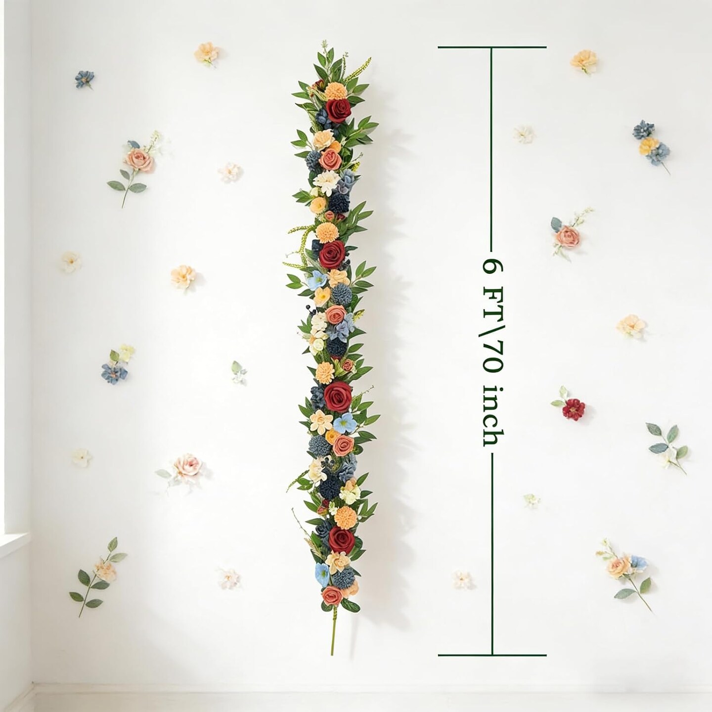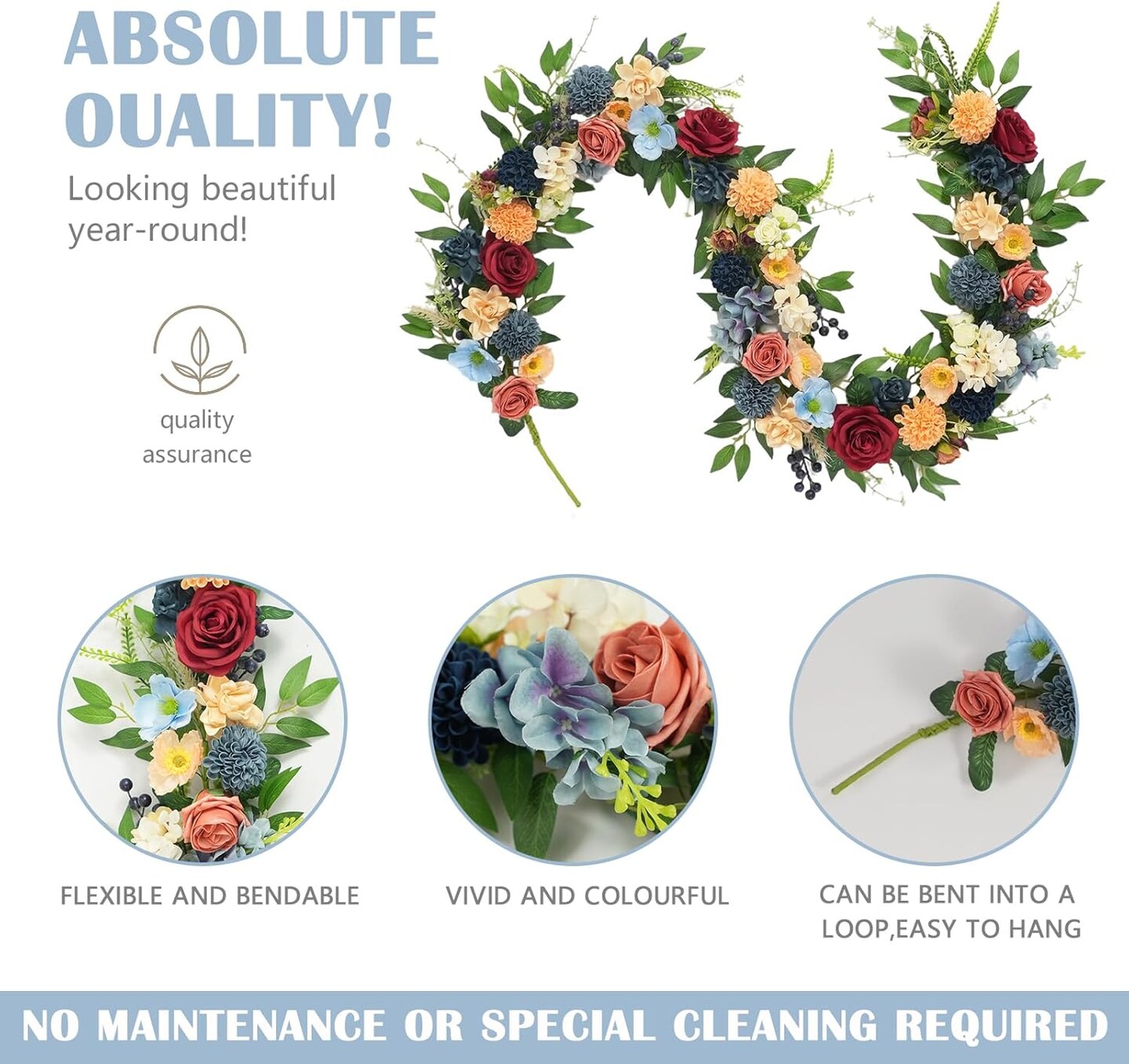 70 Inch Spring Flower Garland – Farmhouse Boho Faux Floral Garland with Roses, Dahlias & Greenery, Decorative Garland for Wedding Arch, Front Door, Fireplace Mantel, Table & Party Backdrop