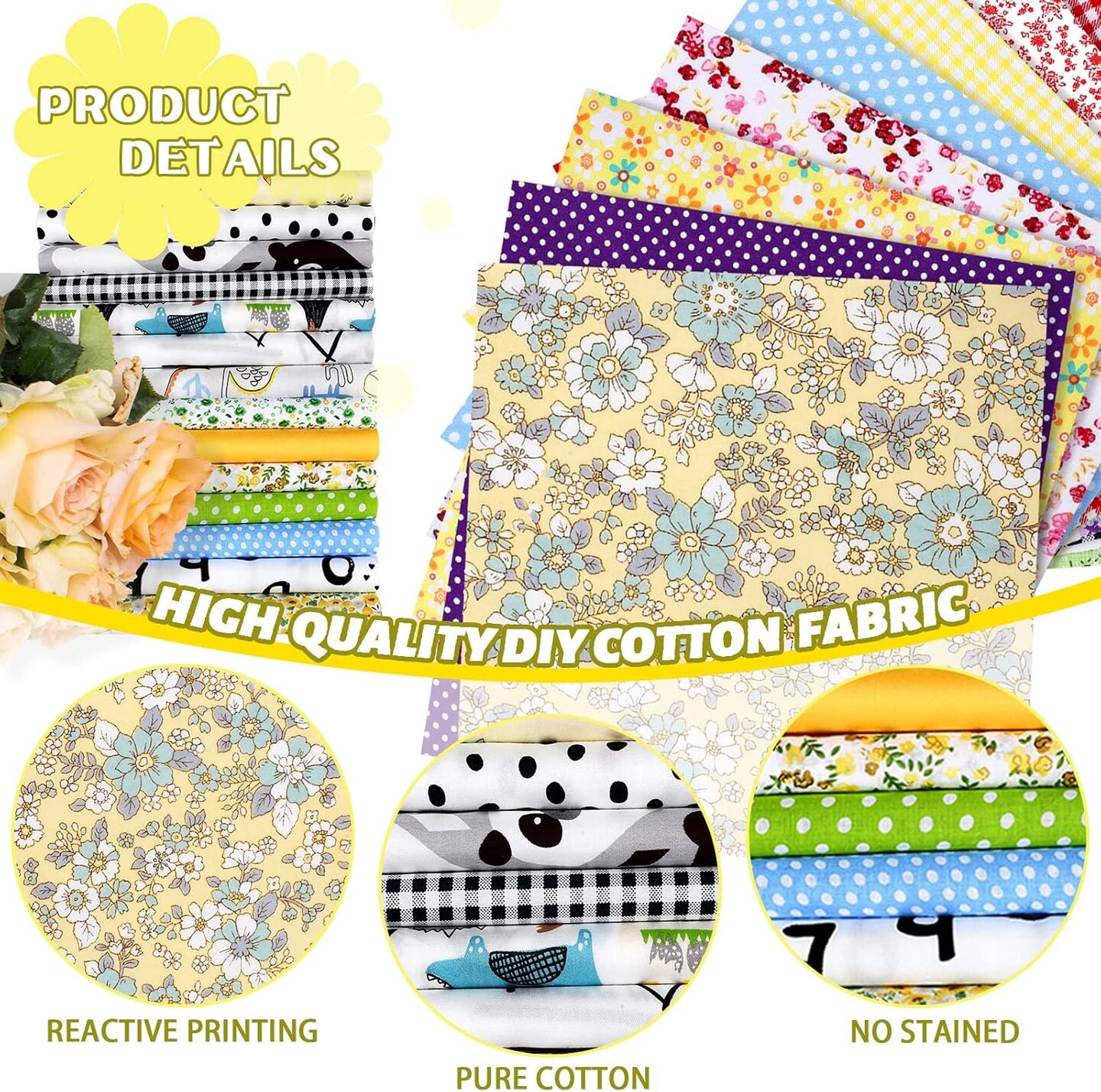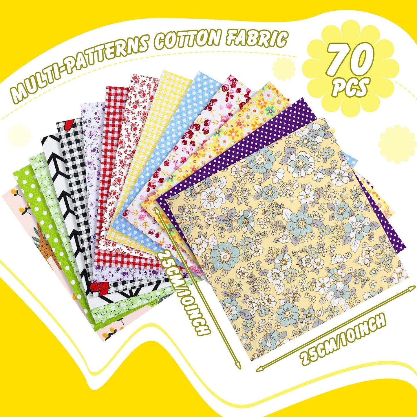 70 Pcs Cotton Fabric Squares - 10 x 10 Inch (Fresh Style)