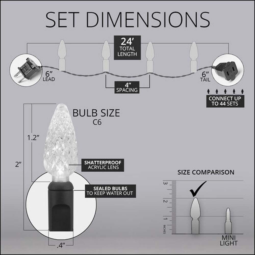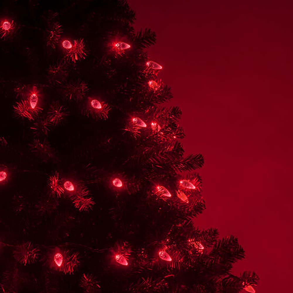 70 Red C6 LED Christmas Lights, Green Wire, 4" Spacing