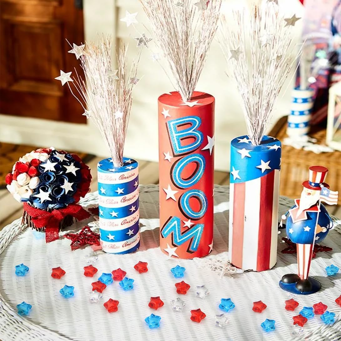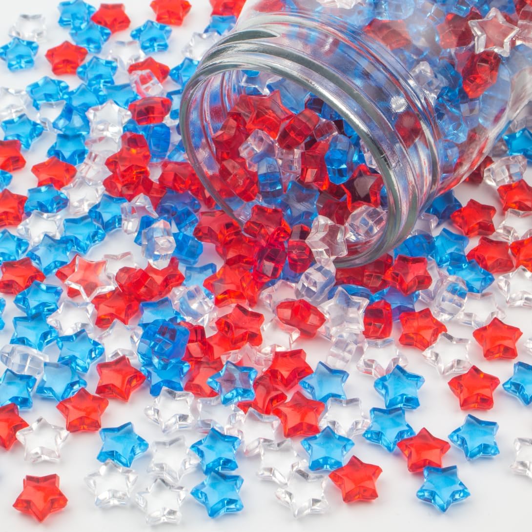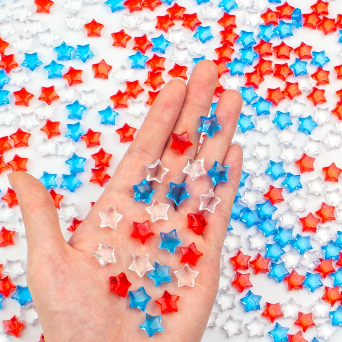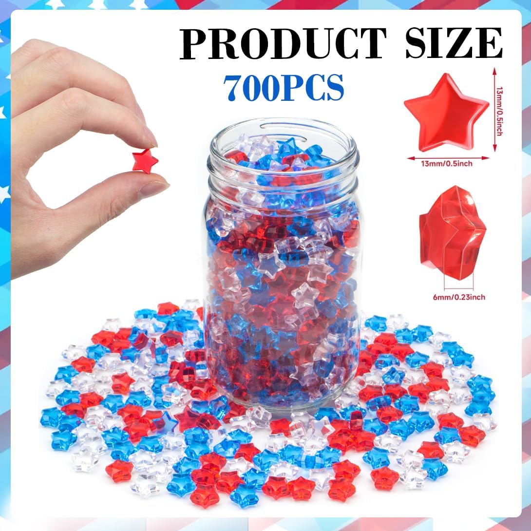 700 Pcs Mini Patriotic Vase Filler,0.5in 4th of July Star Acrylic Gems, Red White and Blue Decorations,Patriotic Centerpieces for Tables, Sensory Bin Filler