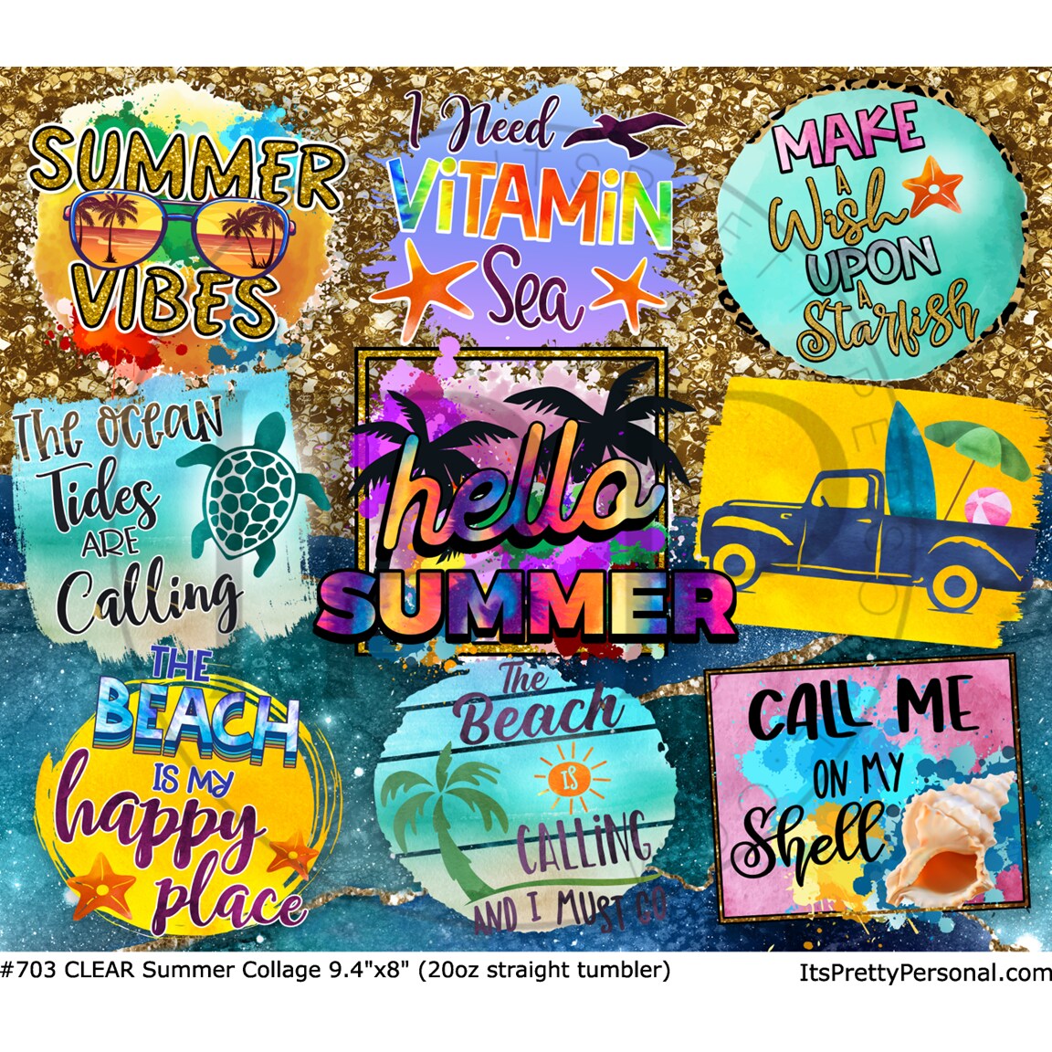 #703 CLEAR- 20oz - Summer Beach Collage 9.4" x 8" Pattern Vinyl Wrap