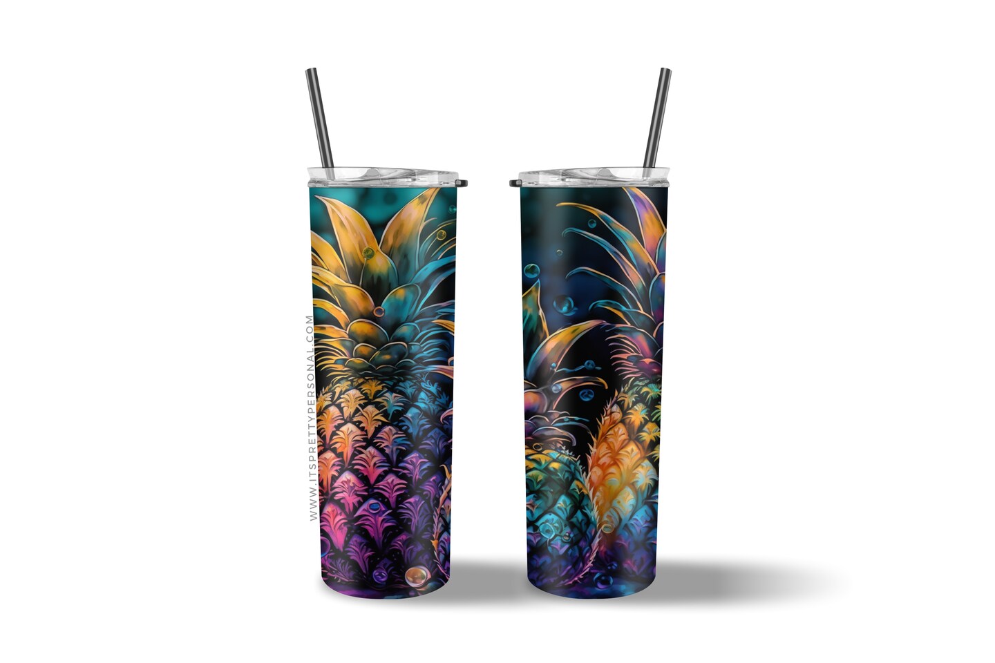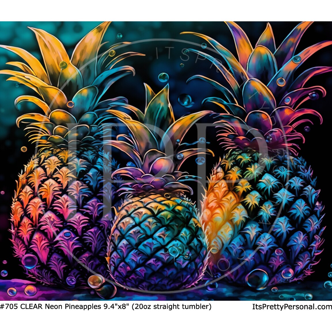 #705 CLEAR- 20oz - Neon Pineapples 9.4" x 8" Pattern Vinyl Wrap
