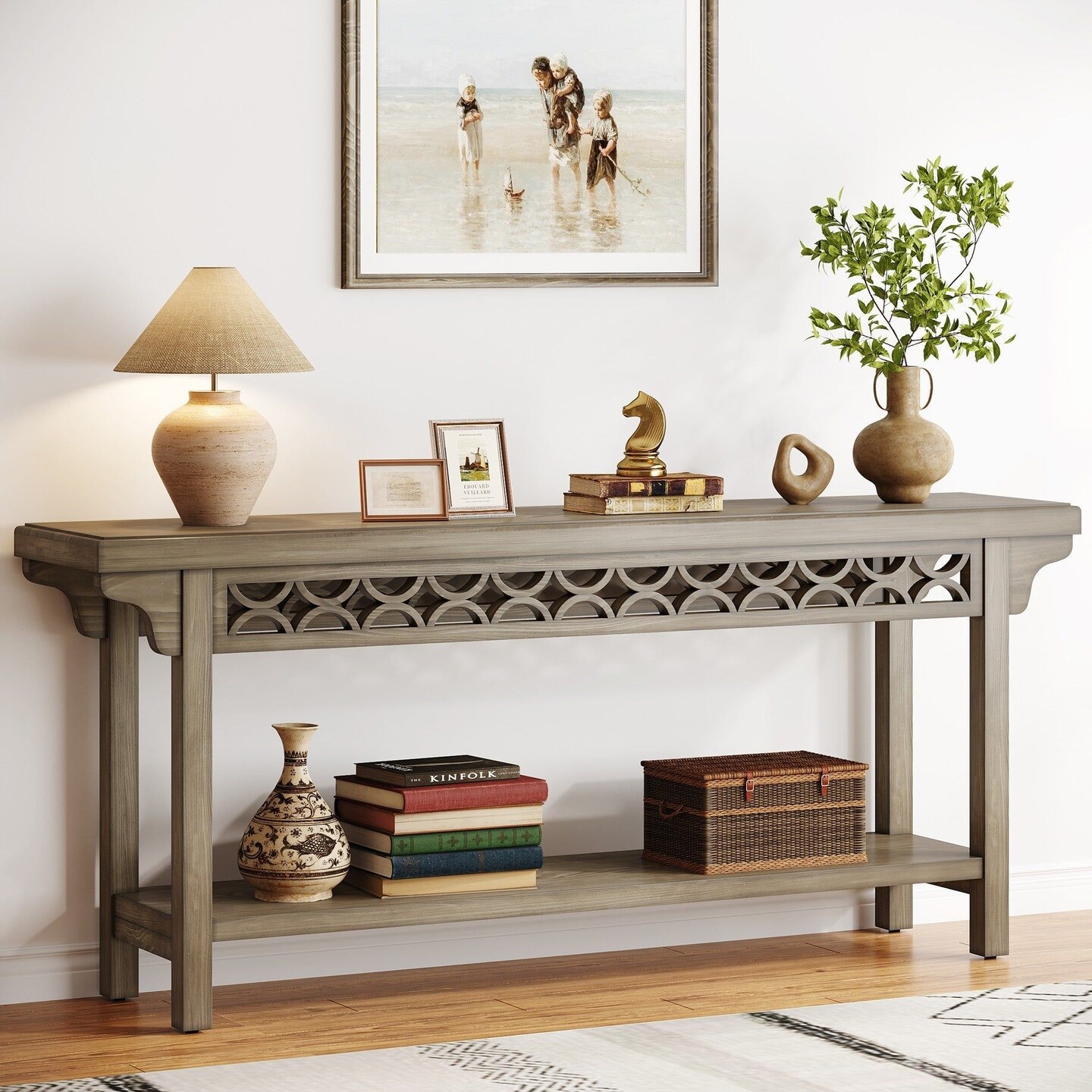 70.8" Narrow Farmhouse Console Wood Sofa Table Organizer