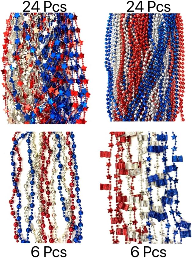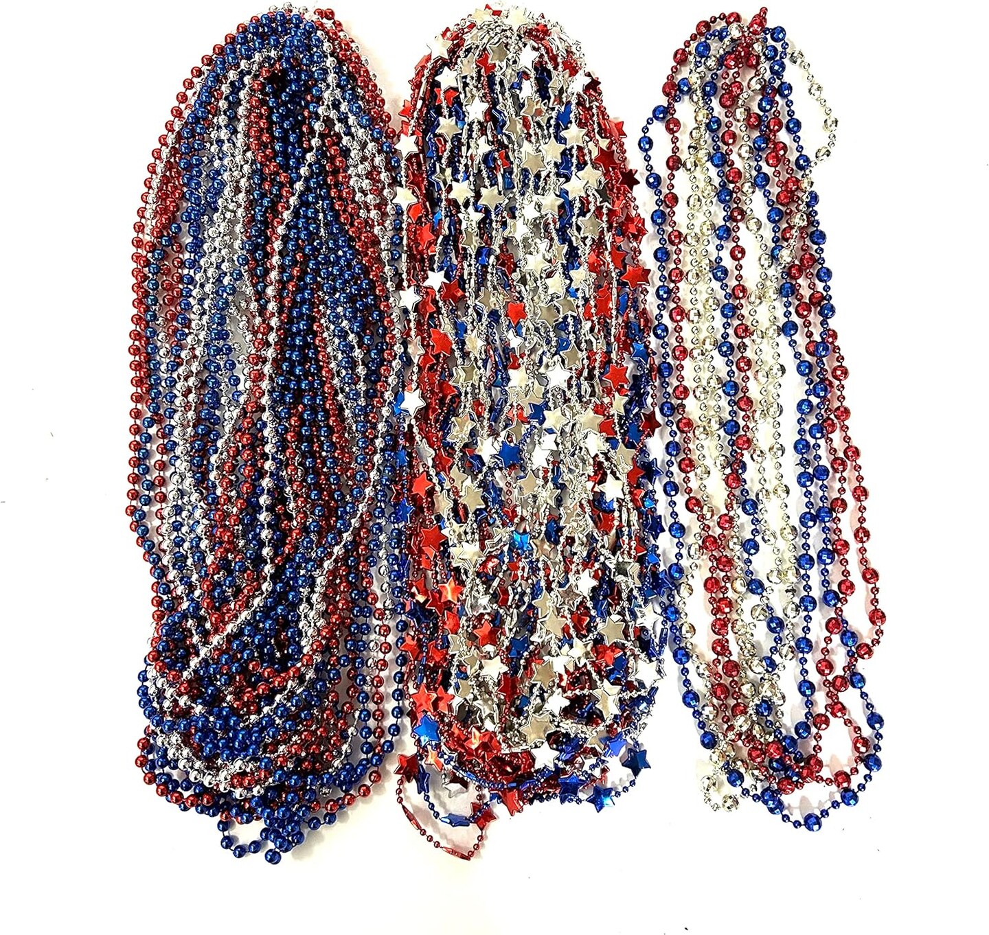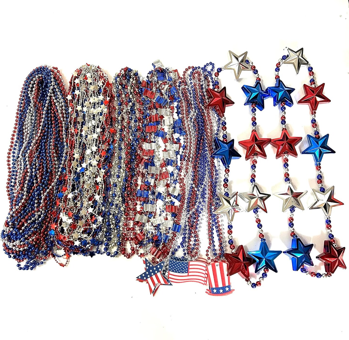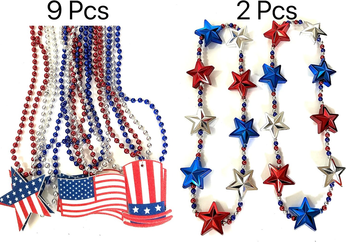 71 Pcs 4th of July Beads Necklaces Independence Day Beads Set Red White Blue