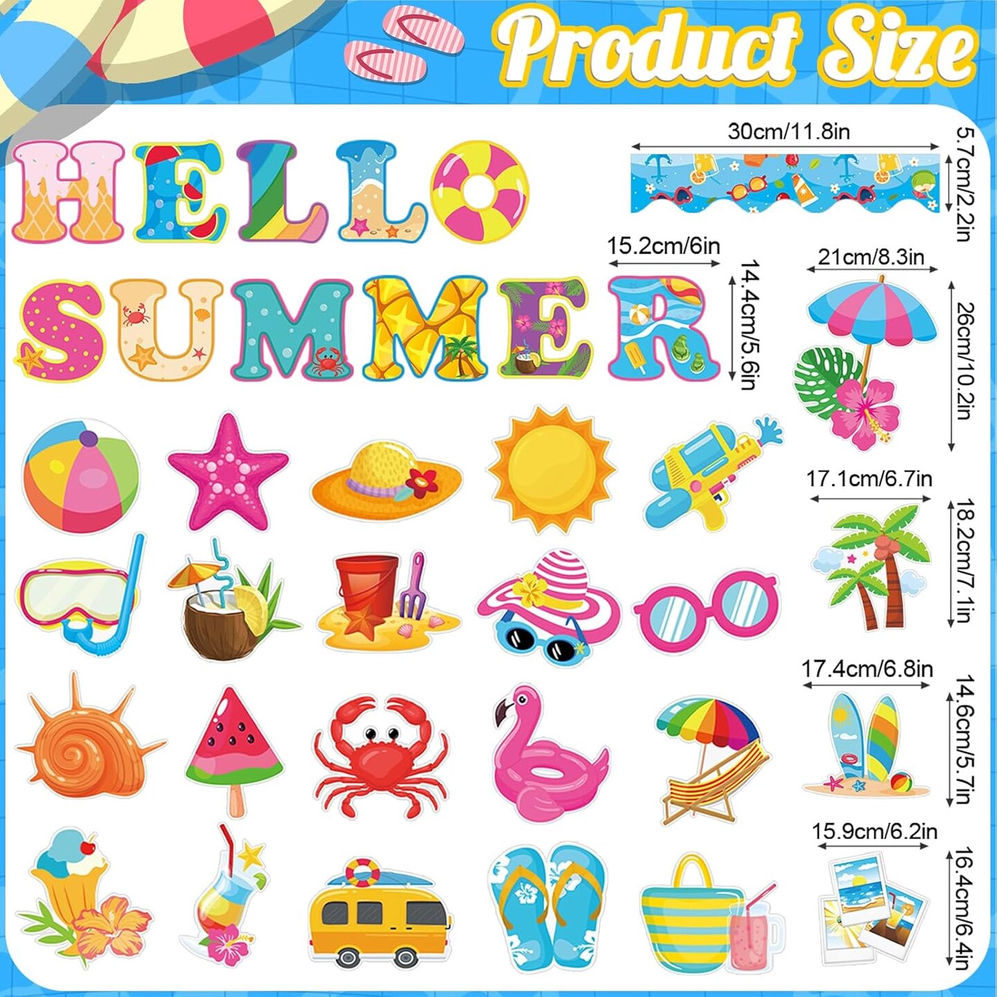 71 Pcs Hawaiian Hello Summer Bulletin Board Set