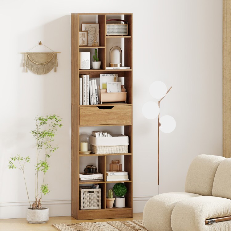 71" Tall 10-Cube Storage Organizer Bookcase with Drawer for Books & Decor