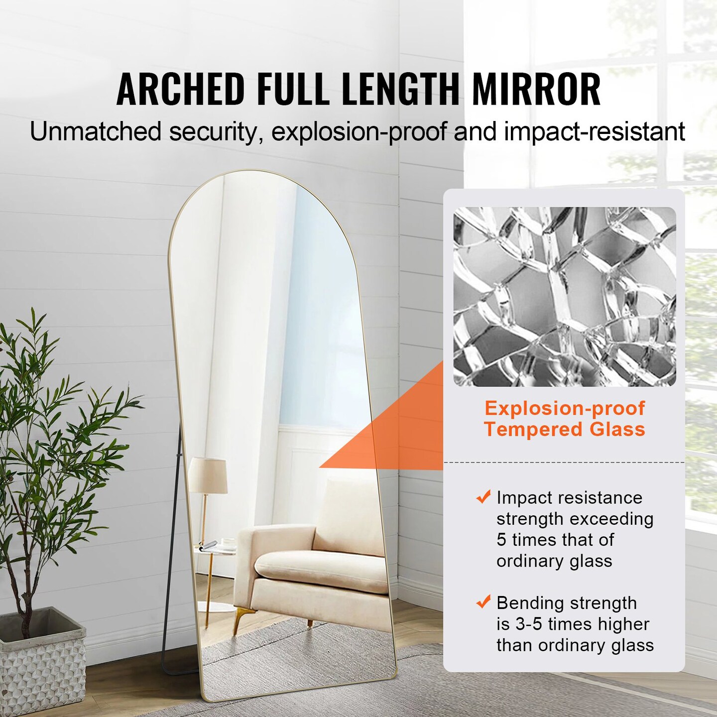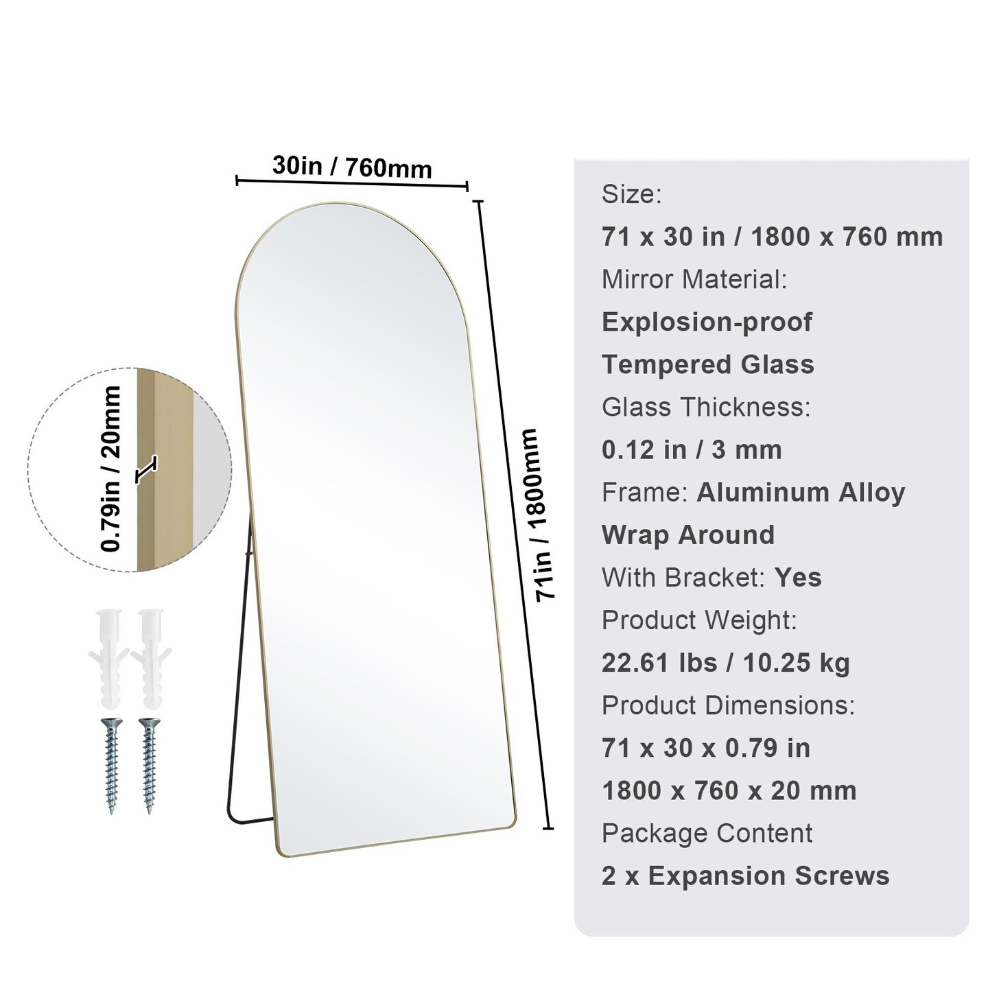 71-Inch Arched Full-Length Floor Mirror Tempered Glass with Aluminum Alloy Frame & Stand