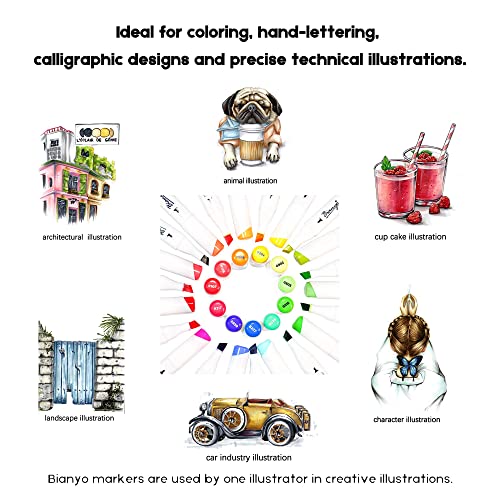 72 color -Classic Alcohol Markers Set, , Dual Tip Bullet & Chisel Art Marker, Black Case with a Designable Card for Coloring, Drawing, Sketching, Outlining