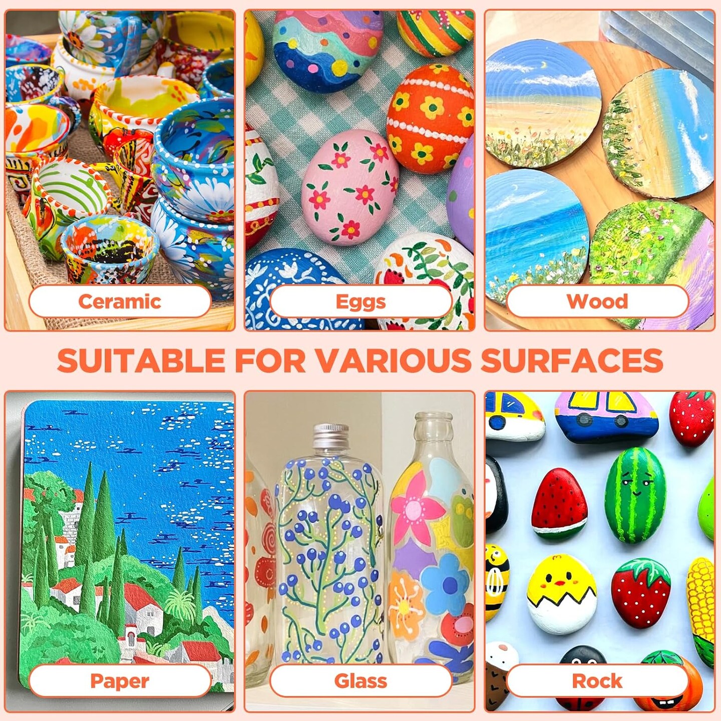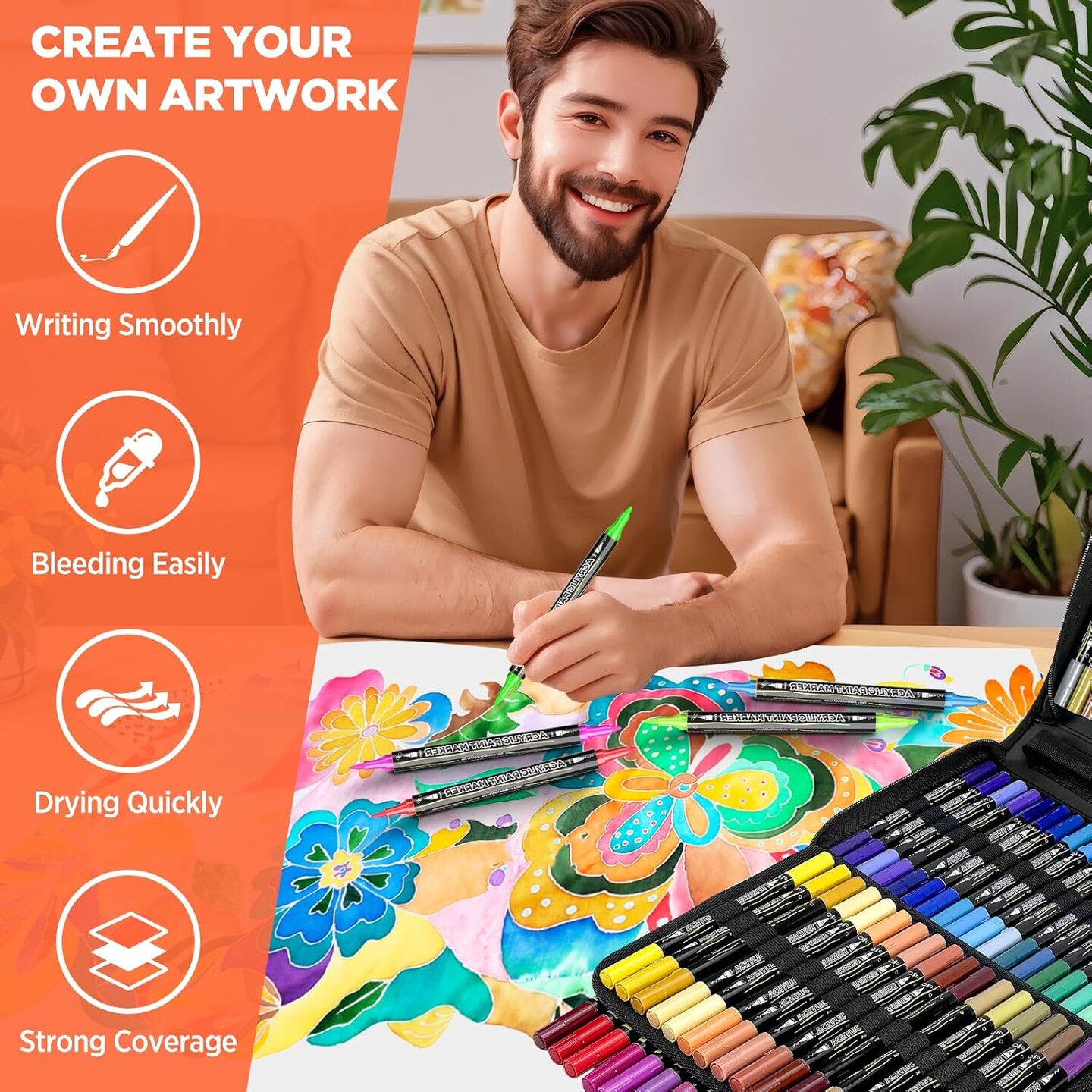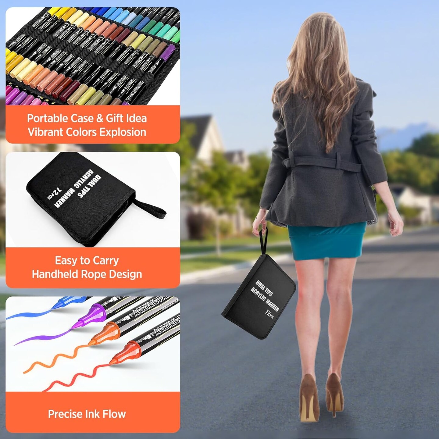 72 Colors Acrylic Paint Pens – Dual Tip Brush & Fine Tip Markers for Rock Painting, Wood, Canvas, Stone, Glass, Ceramic, DIY Crafts, Professional Art Supplies