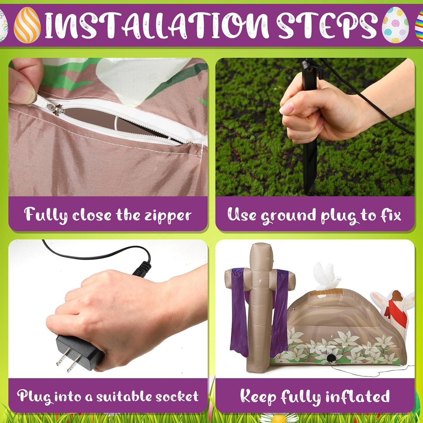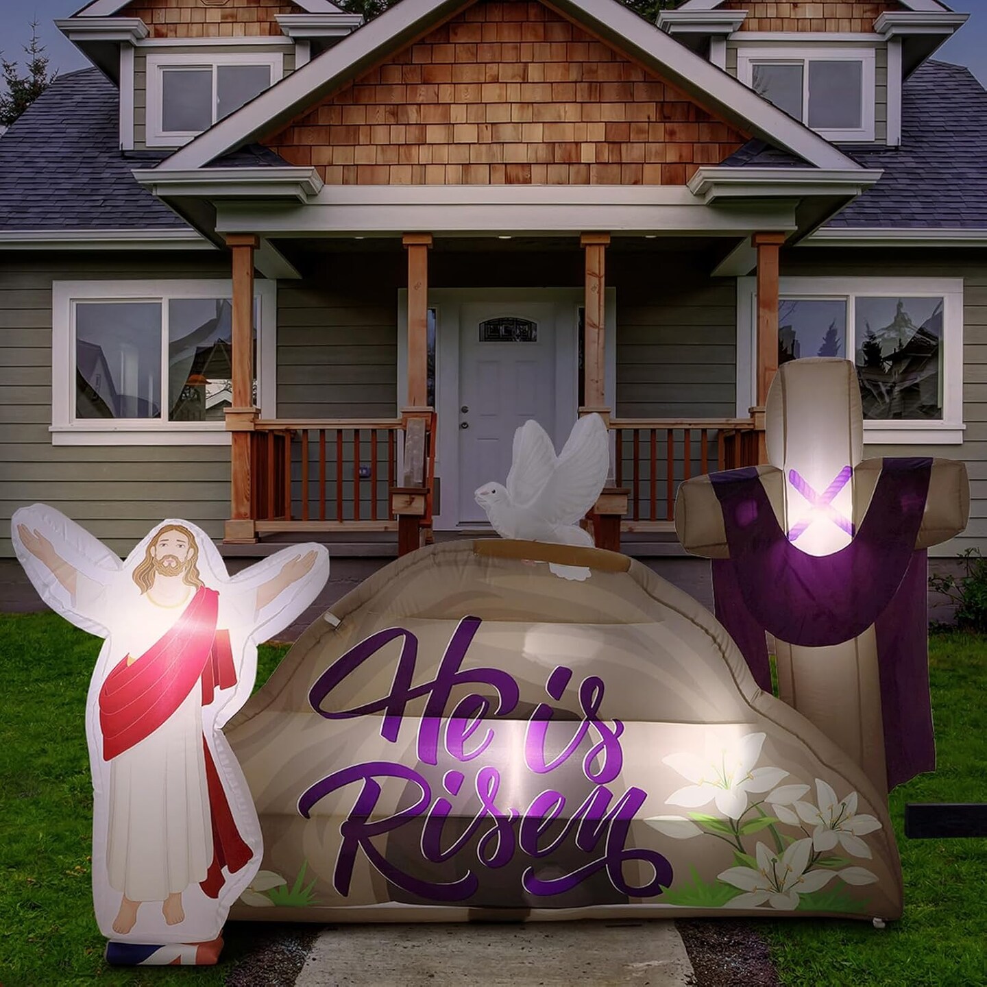 7.2 FT Long Easter Inflatables Outdoor Decorations He is Risen Inflatables Blow Up Yard Decorations with Cross LED Lighted Christian Jesus for Outdoor Holiday Yard Garden Lawn Party Decoration