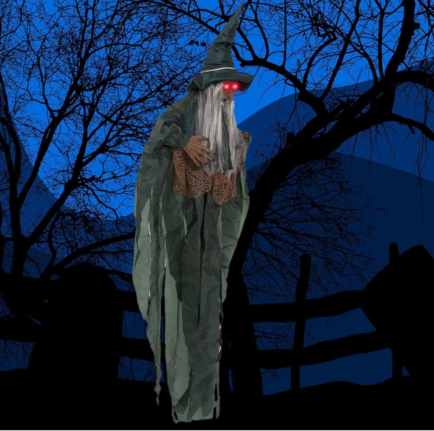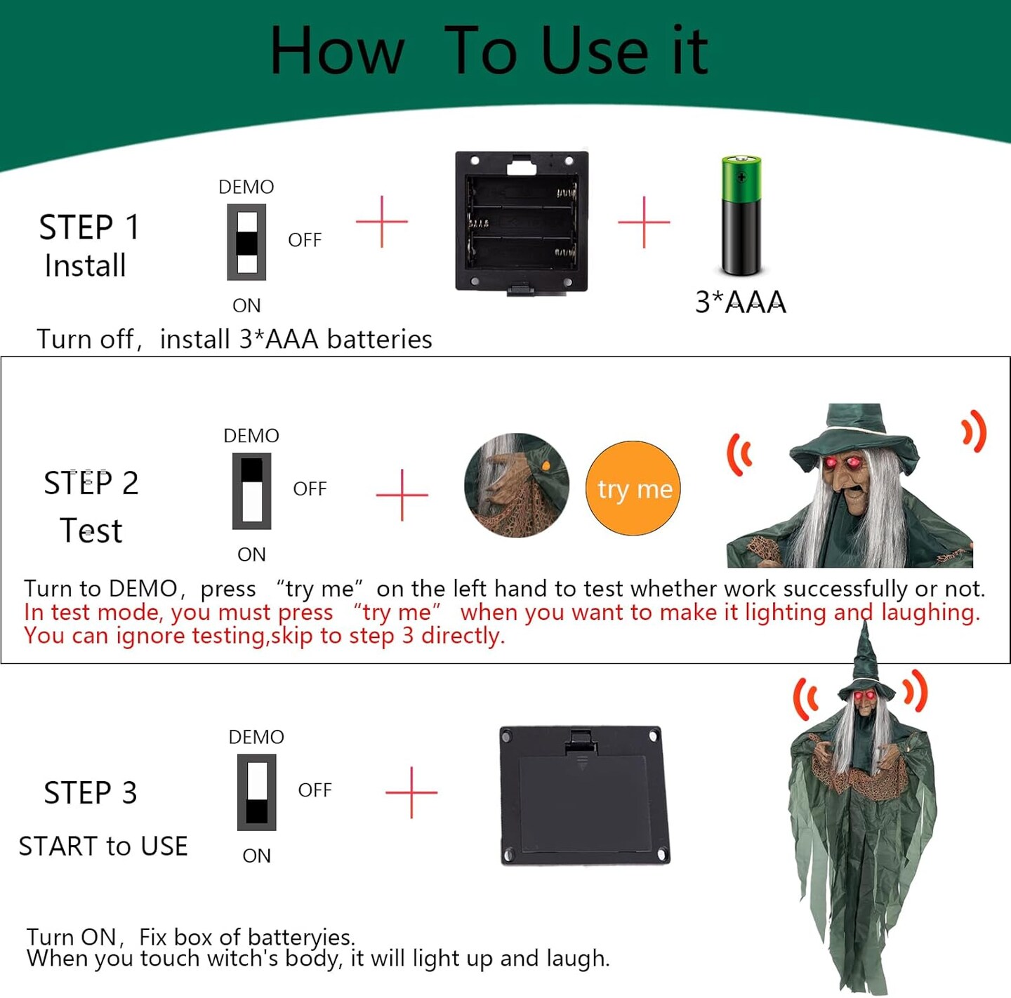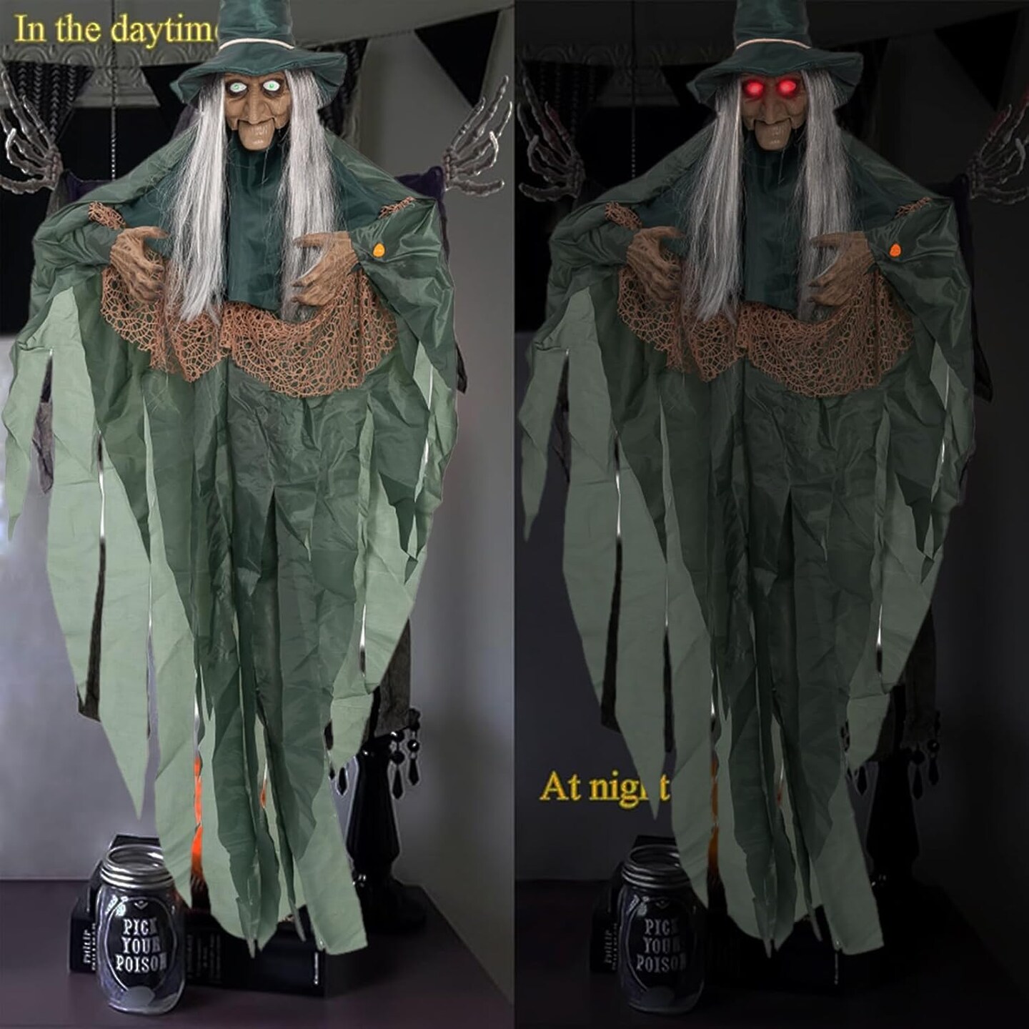 72" Hanging Witch Halloween Decoration with Light-up Eyes Motion Activation Function Creepy Laughing Halloween Animatronics Haunted House Prop Décor Outdoor Indoor