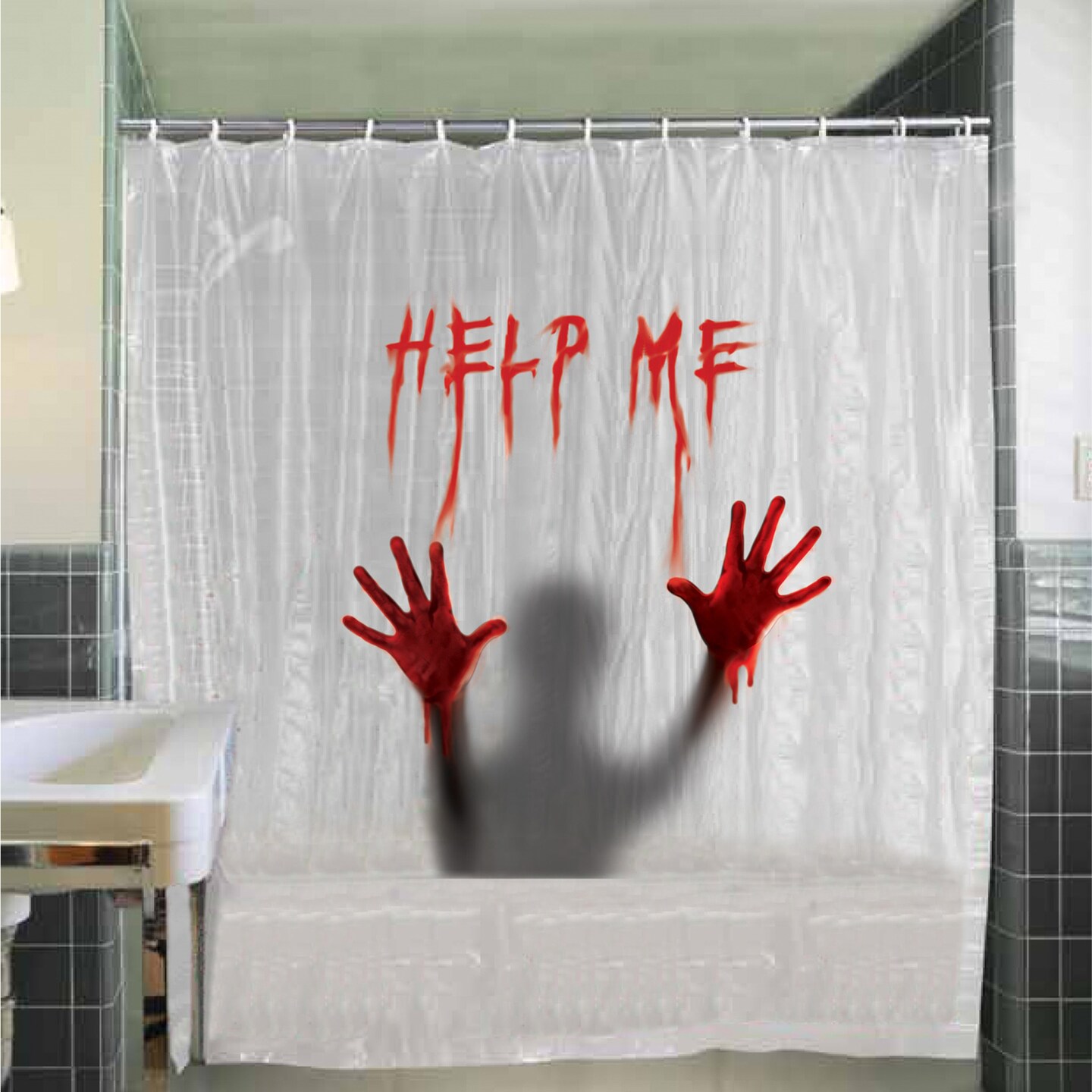72 Inch Help Me Blood Stained Shower Curtain Horror Decoration