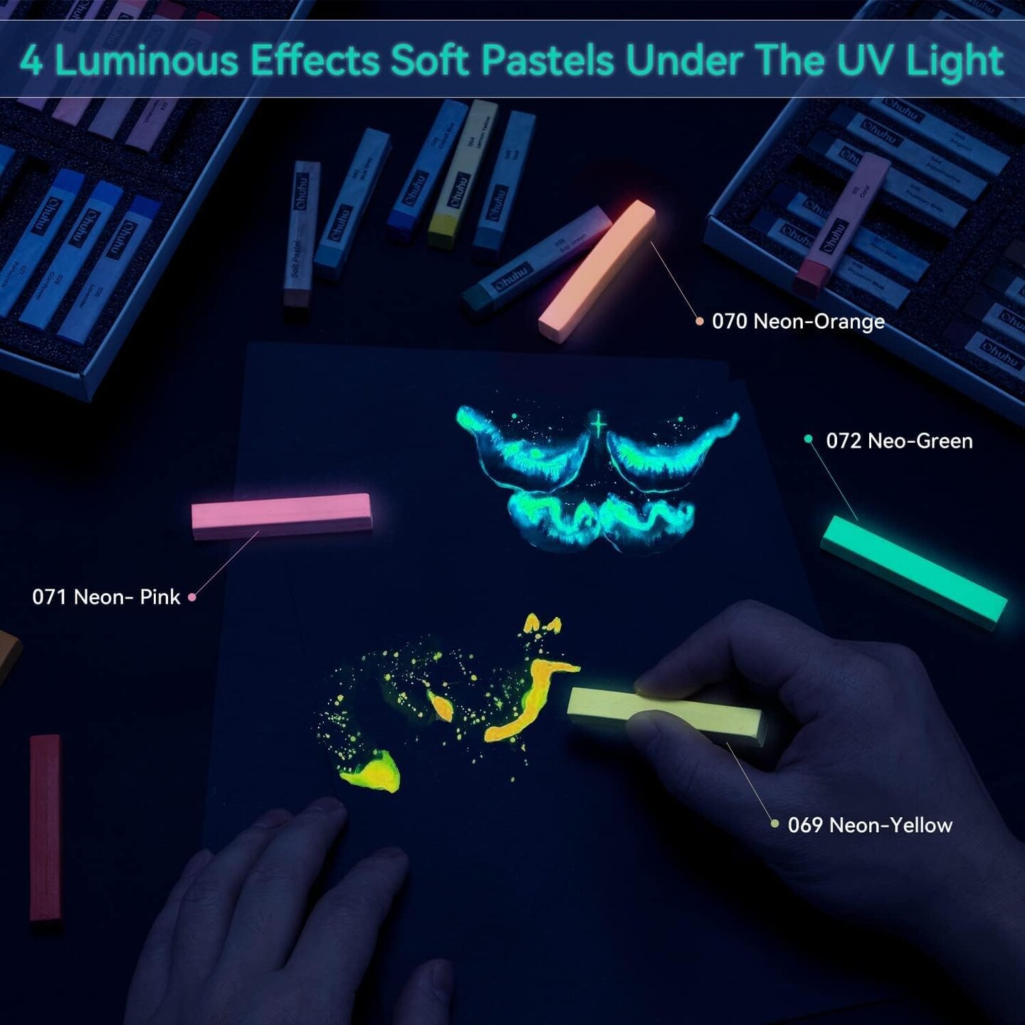72 Long Chalk Pastel Set: 72 Soft Pastels Markers For Artists 4 Fluorescent Colors With 6 Pastel Papers Included for Drawing Blending Layering Shading Pastels Set
